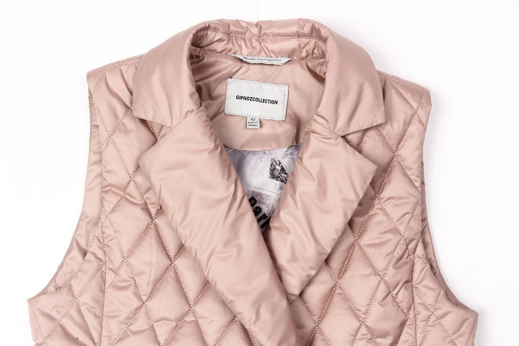 Теплые женские жилеты — не новый тренд, тем не менее его популярность усилилась, благодаря универсальности, практичности этой одежды среди других фасонов. Удлиненный жилет из стеганой ткани смотрится ... Показать описаниестильно и будет согревать вас в холодную погоду. Жилет прямого силуэта с английским воротником. Застежка двубортная на петли и пуговицы. Спереди карманы в швах и декоративные клапаны. На спинке – декоративный пояс на пуговицах. «Изюминку» в модель вносит сочетание стеганой ткани и деталей из гладкой ткани. Утеплитель термофин, плотность 100.