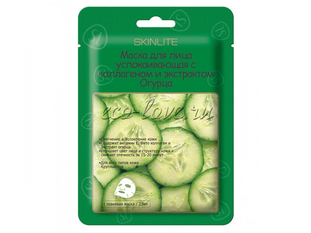 SKINLITE Маска тканевая успок.с коллагеном и экстрактом Огурца 1*23мл