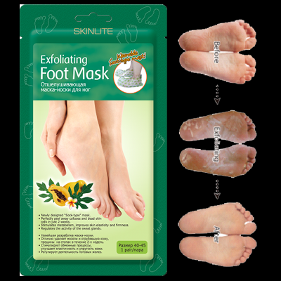 SKINLITE Маска-НОСКИ д/НОГ отшелушивающая 1пара(40-45размер) ПАКЕТИК