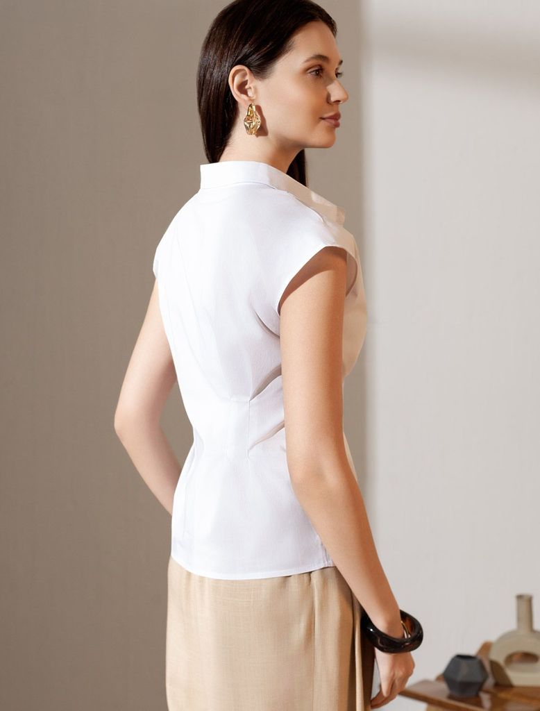 Состав: 77%Хлопок 20%ПЭ 3%ПУ Плотность: 96 Г/м2 Изысканная женственная блузка белого цвета выполнена из легкого хлопкового поплина плотностью 96 Г/м2 и будет идеальна для создания комфортного и красив... Показать описаниеого образа в теплое время года. Натуральный материал отличается мягкостью и воздухопроницаемостью, что особенно ценно в жаркую погоду, а эластан в составе позволяет сохранить форму изделия. Основное преимущество повседневной блузки — аккуратный приталенный силуэт, подчеркивающий достоинства фигуры и создающий акцент на линии талии. Короткий цельнокроеный рукав придает образу свежесть и легкость. Однотонная рубашка с отложным воротничком подойдет для работы в офисе, встреч с друзьями, прогулок, для особого случая или праздника. Лаконичная легкая блузка отлично сочетается с разнообразными элементами гардероба, благодаря ей можно создать классический или романтичный образ.