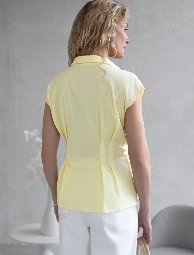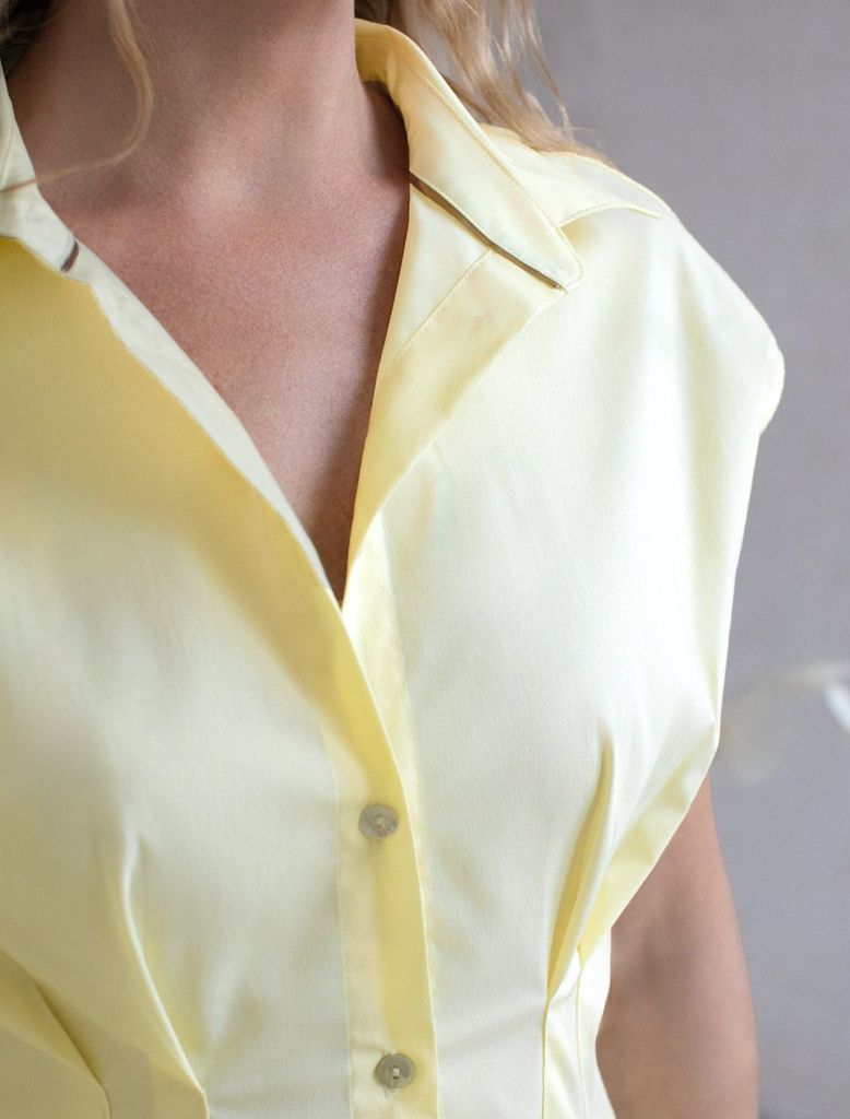 Состав: 77%Хлопок 20%ПЭ 3%ПУ Плотность: 96 Г/м2 Изысканная женственная блузка лимонного цвета выполнена из легкого хлопкого поплина плотностью 96 Г/м2 и будет идеальна для создания комфортного и краси... Показать описаниевого образа в теплое время года. Натуральный материал отличается мягкостью и воздухопроницаемостью, что особенно ценно в жаркую погоду, а эластан в составе позволяет сохранить форму изделия. Основное преимущество повседневной блузки — аккуратный приталенный силуэт, подчеркивающий достоинства фигуры и создающий акцент на линии талии. Короткий цельнокроеный рукав придает образу свежесть и легкость. Однотонная рубашка с отложным воротничком подойдет для работы в офисе, встреч с друзьями, прогулок, для особого случая или праздника. Лаконичная легкая блузка отлично сочетается с разнообразными элементами гардероба, благодаря ей можно создать классический или романтичный образ.