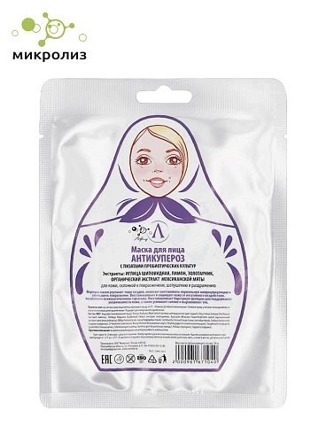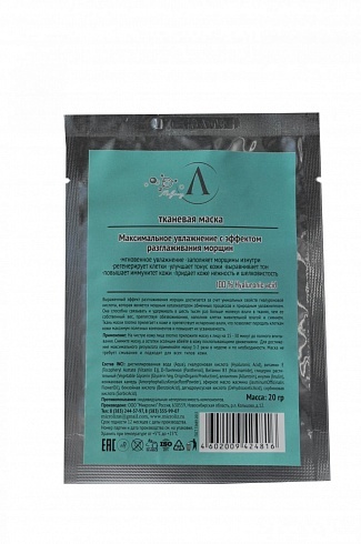 Маска направлена на оздоровление кожи — замедляет процессы старения, ускоряет синтез волокон коллагена и эластина, и способствует регенерации клеток эпидермиса. Эффективно разглаживает, уменьшает глуб... Показать описаниеину морщин, борется с мимическими морщинами. Не требует смывания. Маска интенсивно увлажняет, восполняет недостаток влаги в клетках эпидермиса и предотвращает дегидратацию кожи. Устраняет сухость, улучшает цвет лица и ускоряет процессы обновления кожи. Эффективно разглаживает, уменьшает глубину морщин, борется с мимическими морщинами. Ткань маски плотно прилегает к коже и препятствует испарению влаги, что позволяет передать клеткам кожи максимум полезных компонентов и повышает их усваиваемость. Маска также обладает заживляющим действием, ускоряет регенерацию тканей и помогает избавиться от воспалений. Восстанавливает и укрепляет липидный барьер, который защищает кожу от агрессивного воздействия окружающей среды (УФ-лучи, пыль, химия). Активные компоненты: — Комплекс гиалуроновых кислот — интенсивно и глубоко питает клетки эпидермиса влагой, восстанавливает гидролипидный барьер кожи. Препятствует дегидратации, повышает эластичность кожи и замедляет процессы старения. Способствует поддержанию нормального уровня влаги в клетках и тканях кожи. — 2 вида пептидов — увеличивают упругость и эластичность кожи, ускоряют процессы выработки организмом собственных волокон коллагена и эластина. Эффективно разглаживают, уменьшают глубину морщин и препятствуют обвисанию кожи. Сокращают мимические морщины. Укрепляют защитный барьер кожного покрова. — Экстракт водорослей получен экстракцией красных и бурых водорослей, содержат спектр биологически активных элементов: медь, цинк, селен, йод, витамины, аминокислоты, натуральные жирные кислоты, антиоксиданты. — Трегалоза — полисахарид, который оказывает мощное увлажняющее действие, замедляет процессы старения и обладает антиоксидантной активностью. — Пантенол — стимулирует восстановление целостности кожных покровов, снимает покраснения и раздражение, обладает ранозаживляющими свойствами. — Аллантоин — смягчает, интенсивно увлажняет кожу, способствует сужению пор и нормализации выработки кожного сала, обладает противовоспалительными свойствами, успокаивает раздраженную кожу. — Мальтоза состоит из двух молекул глюкозы. Мальтоза повышает гладкость кожи, являясь еще одним увлажнителем. Противопоказания: индивидуальная непереносимость компонентов.