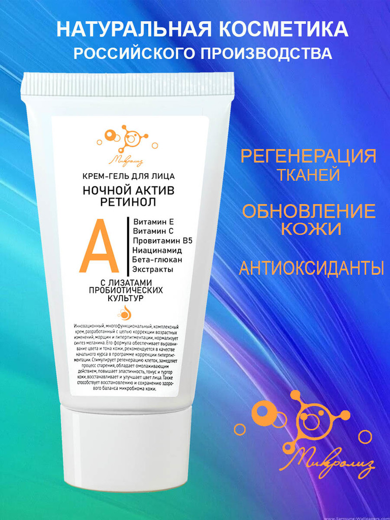 Инновационный , многофункциональный , комплексный крем , разработанный с целью коррекции возрастных изменений , морщин и гиперпигментации , нормализует синтез меланина . Его формула обеспечивает вырав... Показать описаниенивание цвета и тона кожи , рекомендуется в качестве начального курса в программе коррекции гиперпигментации . Стимулирует регенерацию клеток , замедляет процесс старения , обладает омолаживающим действием , повышает эластичность , тонус и тургор кожи , восстанавливает и улучшает цвет лица . Также способствует восстановлению и сохранению здорового баланса микробиома кожи . Крем на основе ретинола является многофункциональным средством ухода, как для молодой, так и возрастной кожи. Ретинол отличается от витамина А более высокой биодоступностью и способен оказывать быстрый и ошеломительный эффект в борьбе с акне; морщинами, даже глубокими; гиперпигментацией; истончением кожи и поплывшим овалом лица. Ретинол дает мощный терапевтический результат в нормализации работы сальных желез, очищает и сужает поры, помогает клеткам активно делиться, избавляя кожу от застойных процессов, сосудистая сеточка становится менее заметной. Усиление метаболизма в тканях позволяет достигнуть стойкого и значительного эффекта омоложения, кожа становится более плотной и подтянутой, уголки рта поднимаются, восстанавливается четкий овал лица. Комплекс компонентов крема помогает добиться ровного тона кожи, нормализует выработку меланина и рекомендован в качестве начального курса в программе коррекции гиперпигментации. Витамин Е и С, ниацинамид, провитамин В5 благодаря своим антиоксидантным свойствам усиливают действие ретинола и многократно повышают способность кожи к регенерации и обновлению. Кожа становится более эластичной и увлажненной, заломы проходят, разглаживается рельеф. Учитывая, что бактериальный баланс на поверхности лица меняется в зависимости от времени года, климата, городских условий, используемой воды и т.д., коже для поддержания здоровья необходимо постоянно пополнять запасы полезных бактерий. Пробиотики в креме повышают защитные свойства дермы к инфекциям и свободным радикалам, снимают воспаления, нормализуют выработку себиума для всех типов кожи, запускают активный синтез гиалуроновой кислоты и прекрасно омолаживают. Экстракты растений дополняют витаминный и минеральный баланс компонентов, усиливают антибактериальный эффект и также способствуют регенерации тканей. Экстракты глубоко увлажняют, помогая коже быстро восстанавливаться. Способ применения: Перед сном нанесите на очищенную кожу лица и шеи небольшое количество крема легкими массажными движениями . Следует начать применение с 2-х раз в неделю , постепенно , в зависимости от переносимости , переходя на ежедневное применение . Если при применении возникает неприятное жжение , необходимо временно уменьшить частоту применения до 1 раза в неделю . В течение первой недели применения может наблюдаться сухость , раздражение и шелушение кожи . Если шелушение и раздражение усиливаются и не проходят , необходимо прекратить использовать крем.