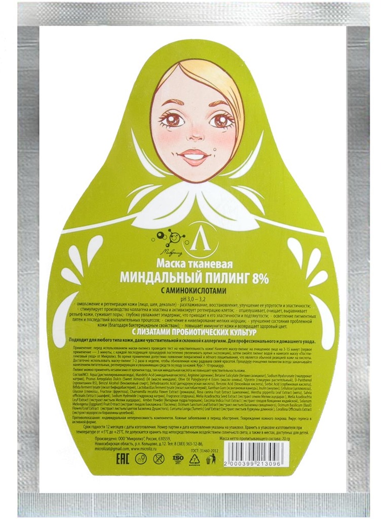 Маска для лица "Комплекс гиалуроновых кислот + пептиды" (ткань), сашеВопросы по товару