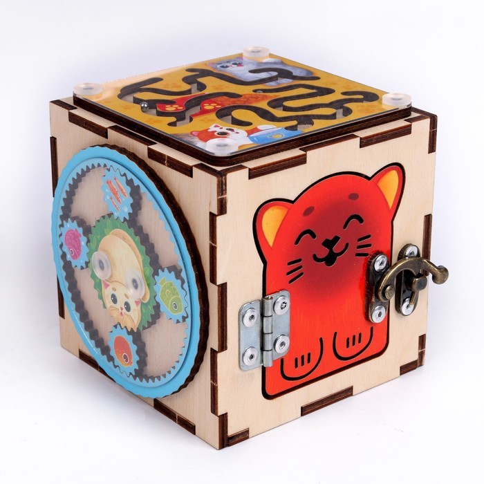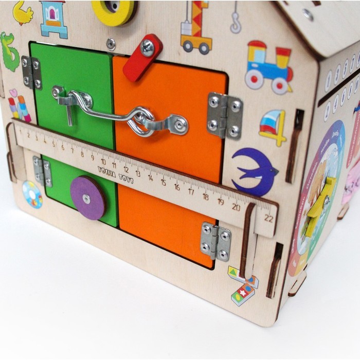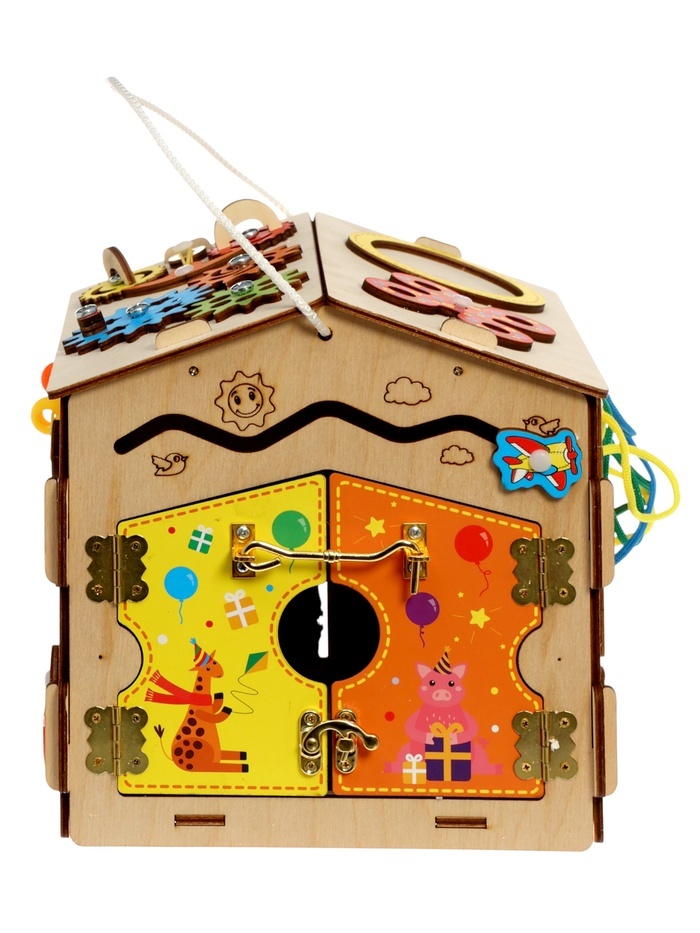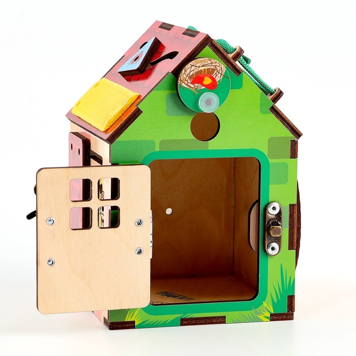 Маленький дом, где всё работает по-настоящему. Развивающий бизиборд-домик — это игровое пространство, в котором ребёнок исследует, пробует и понимает, как устроены привычные вещи. Формат домика делает... Показать описание игру сюжетной и вовлекающей: здесь хочется задержаться и возвращаться снова. * Живое взаимодействие: Вращение, открывание, протягивание, прохождение маршрутов — каждое действие требует внимания и точности. Руки и мышление работают синхронно, без спешки и перегрузки. * Понятная механика: Элементы вроде шестерёнок, щеколды и лабиринта дают ребёнку наглядную связь между действием и результатом. Так формируется причинно-следственное мышление. * Формат “домика”: Закрытая форма с разными сторонами поддерживает интерес и помогает сосредоточиться. Игру легко превратить в историю — про дом, жителей и порядок. * Деревянная основа: Натуральный материал приятен на ощупь и подходит для спокойной, длительной игры дома, в детском саду или развивающем центре. Развитие без давления: Бизиборд-домик подходит для детей от трёх лет, когда особенно важно развивать мелкую моторику и логику через самостоятельные действия. Это не игрушка “на один раз”, а инструмент для ежедневных открытий — понятный, устойчивый и универсальный для мальчиков и девочек.