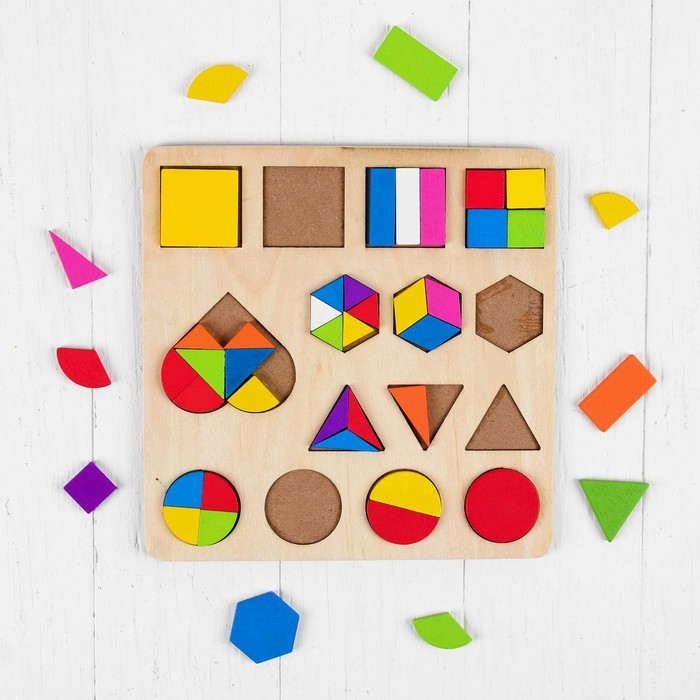 Головоломка «Логические фигуры», набор 3 шт. создана по методике Монтессори, направленной на развитие тактильных ощущений. Особенность этого метода в том, что взрослый не вмешивается в творческий проц... Показать описаниеесс игры. То есть малыш изучает игровой материал, цвета элементов, формы фигур и сравнивает их самостоятельно. Кроха сам выбирает дидактический материал, из которого будет творить, а также продолжительность и ритм занятий. Головоломка — это прекрасный тренажёр для интеллекта ребёнка. Он развивает логику и образное мышление, мелкую моторику, математические и аналитические способности, воображение. Кроха учится из отдельных частей собирать цельные фигуры, находить пары. Юный вундеркинд познакомится с такими понятиями, как «половина», «треть», «часть-целое». Игры с материалами развивают у деток самостоятельность, креативность, умение находить решения. Дополнительно Размер каждой доски — 15 x 15 см.