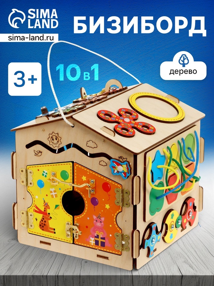 Деревянный бизиборд — это универсальная игрушка для детей от 3 лет, которая помогает развивать моторику, логику и творческое мышление. Созданный по принципам методики Монтессори, этот бизиборд предлаг... Показать описаниеает малышу пространство для самостоятельного обучения и игр без лишних сложностей. Особенности * Включает интерактивные элементы: шестерёнки, шнуровку, липучку и крючки, которые тренируют координацию движений и мелкую моторику. * Изготовлен из натурального дерева, что делает его безопасным и экологичным выбором для ребёнка. * Компактный дизайн позволяет легко использовать игрушку как дома, так и в путешествии. * Подходит для мальчиков и девочек, стимулируя воображение и самостоятельность в создании сюжетов игр. * Простая конструкция помогает сосредоточиться на конкретных задачах, развивая логическое мышление и внимание к деталям. Чем полезен этот бизиборд Бизиборд способствует развитию важных навыков: улучшает координацию движений, тренирует мелкую моторику рук и расширяет цветовое восприятие. Играя с шестерёнками, шнуровкой и другими элементами, ребёнок учится решать задачи, придумывать собственные сценарии и развивать воображение. Это не только занимательное занятие, но и источник новых знаний и открытий.