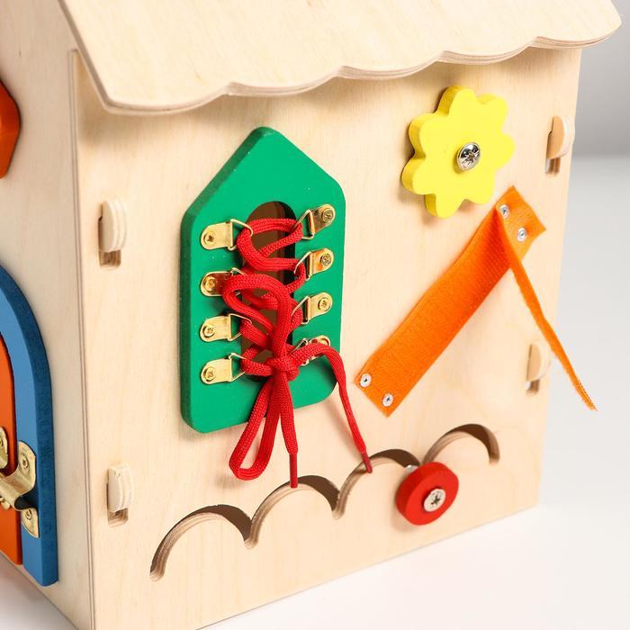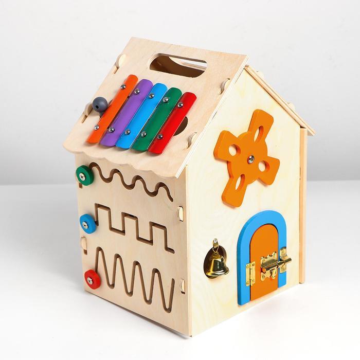 Бизиборд «Музыкальный домик» — игровой центр с деталями, которые можно крутить, открывать, шнуровать и дёргать. Игрушка надолго увлечёт ребёнка, поможет ему исследовать окружающий мир весело и безопас... Показать описаниено, а также познакомит с музыкальными звуками и первыми арифметическими действиями. Особенности * В комплекте с бизибордом есть палочка для металлофона. * У бизиборда есть ручка для переноски. * Деревянные элементы окрашены безопасными красками на водной основе. * Бизиборд развивает мышление, логику, память, сообразительность, мелкую моторику, тактильные ощущения и усидчивость ребёнка. * Игрушка подходит для детей от 3 лет.