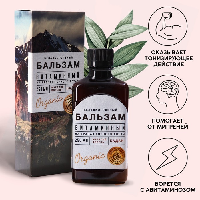 Бальзам безалкогольный на травах «Витаминный»: маралий корень, бадан, в пластиковой бутылке, 250 млБальзам безалкогольный на травах «Витаминный»: маралий корень, бадан, в пластиковой бутылке, 250 млБальзам безалкогольный на травах «Витаминный»: маралий корень, бадан, в пластиковой бутылке, 250 мл