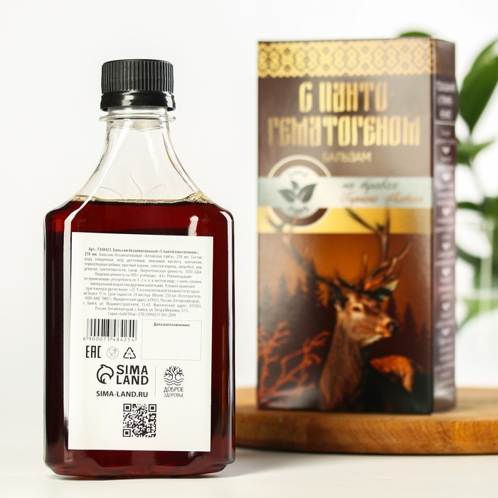 Бальзам безалкогольный «С пантогематогеном»: шиповник, рябина, красный корень, золотой корень, зверобой, аир, девясил, пантогематоген, в пластиковой бутылке, 250 мл.Бальзам безалкогольный «С пантогематогеном»: шиповник, рябина, красный корень, золотой корень, зверобой, аир, девясил, пантогематоген, в пластиковой бутылке, 250 мл.Бальзам безалкогольный «С пантогематогеном»: шиповник, рябина, красный корень, золотой корень, зверобой, аир, девясил, пантогематоген, в пластиковой бутылке, 250 мл.