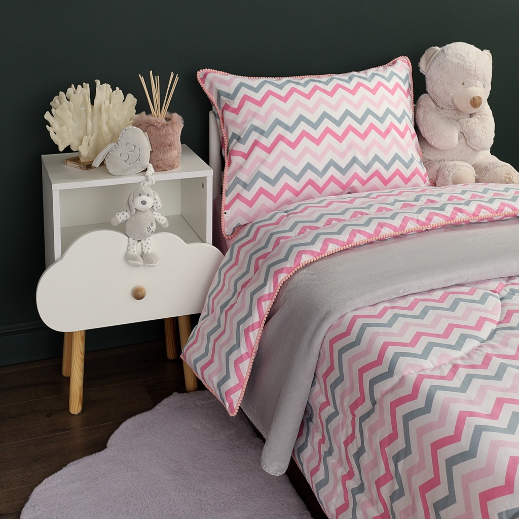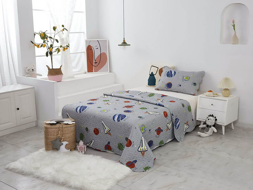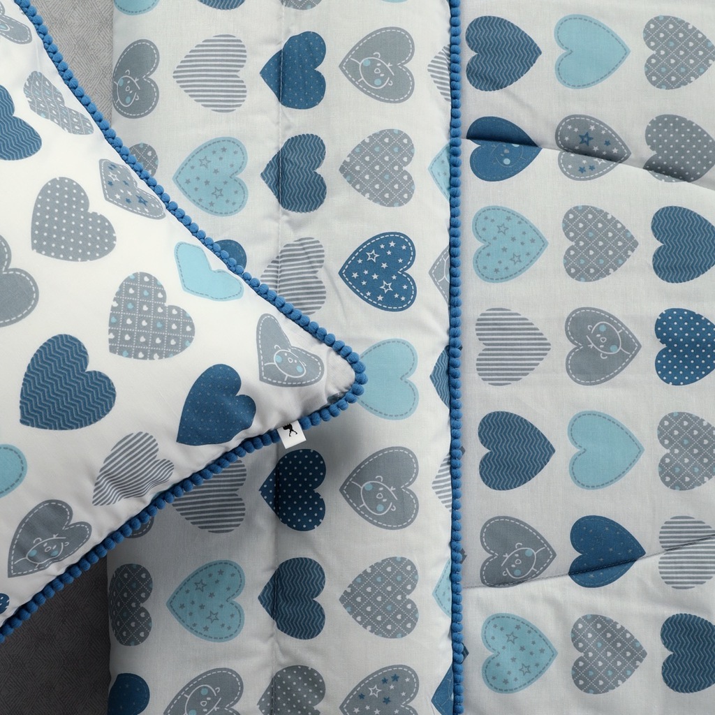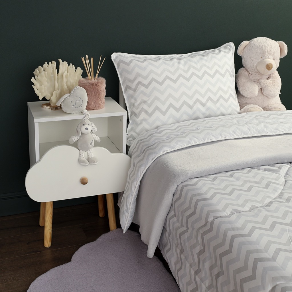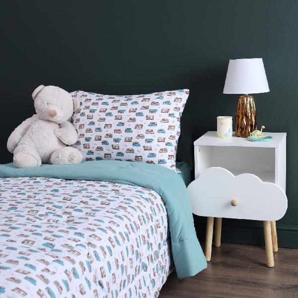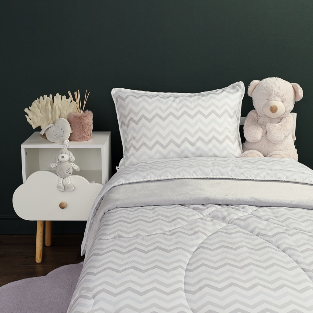 Комплект с одеялом : Одеяло 160х220 см (1) Простыня на резинке 90х190 см (1) Наволочка 50х70 см (1), наволочка на молнии. Состав: 100% хлопок, трикотаж Уход : деликатная стирка Упаковка: ПВХ упаковка