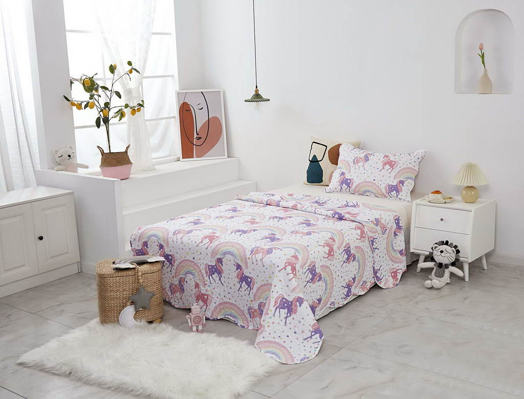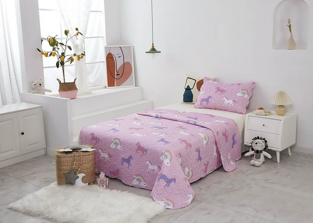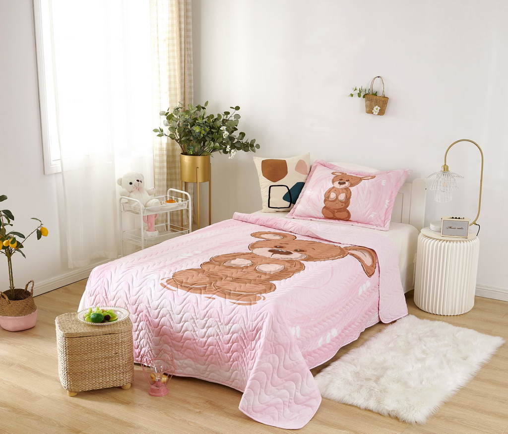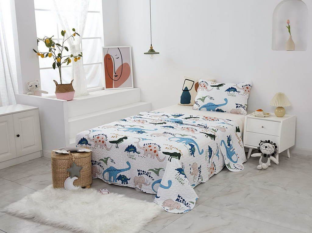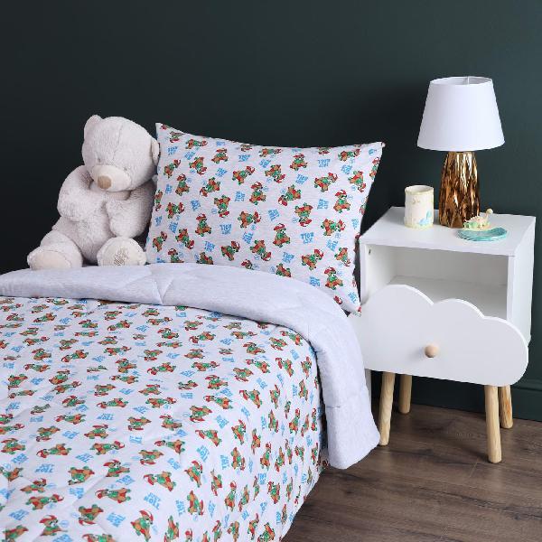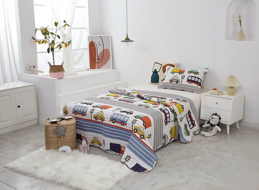 Комплект с одеялом : Одеяло 160х220 см (1) Простыня на резинке 90х190 см (1) Наволочка 50х70 см (1), наволочка на молнии. Состав: 100% хлопок, трикотаж Уход : деликатная стирка Упаковка: ПВХ упаковка
