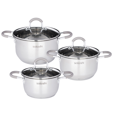SATOSHI Альбер Набор кастрюль 6 пр.: 1,8л, 2,5л, 3,5л, бежевые силиконовые ручки, со стекл. крышкойВопросы по товару