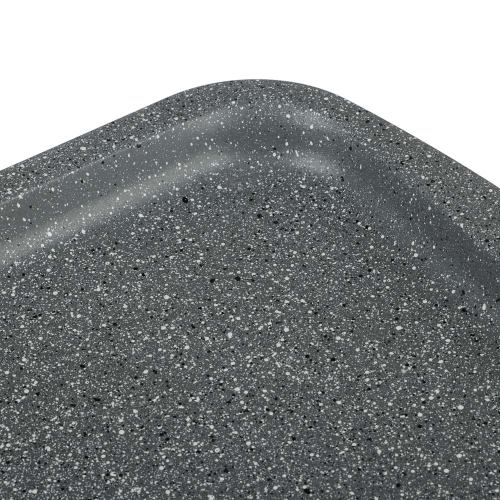 Серия посуды для духовки “Буко” от бренда Satoshi получила свое наименование в честь популярного итальянского блюда из томленой телятины. Для приготовления такого изысканного деликатеса требуется мног... Показать описаниео времени и отличная посуда, которая не позволит мясу пригореть. Именно поэтому посуда этой коллекции изготовлена из толстой углеродистой стали и имеет уникальное антипригарное покрытие “мрамор”, к которому не прилипает пища, оно легко очищается и очень экологично. Цвет серии: серый мрамор с вкраплениями, смотрится сдержанно и изысканно, в такой посуде можно даже подавать блюдо к столу. В коллекции “Буко” Satoshi представлены несколько вариантов противней различного размера и формы, в том числе специальные противни для пиццы и хлеба. Рекомендации В процессе использования посуды с покрытием рекомендуется использование кухонных аксессуаров из дерева, термостойкого пластика или силикона. Во избежание повреждения покрытия не рекомендуется использовать кухонные аксессуары из металла. Нельзя резать пищу на антипригарном покрытии.