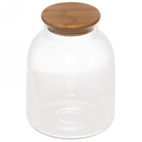Банка для продуктов стеклянная 1800мл "Хай-Тек" с бамбуковой крышкой, бочонокВопросы по товару