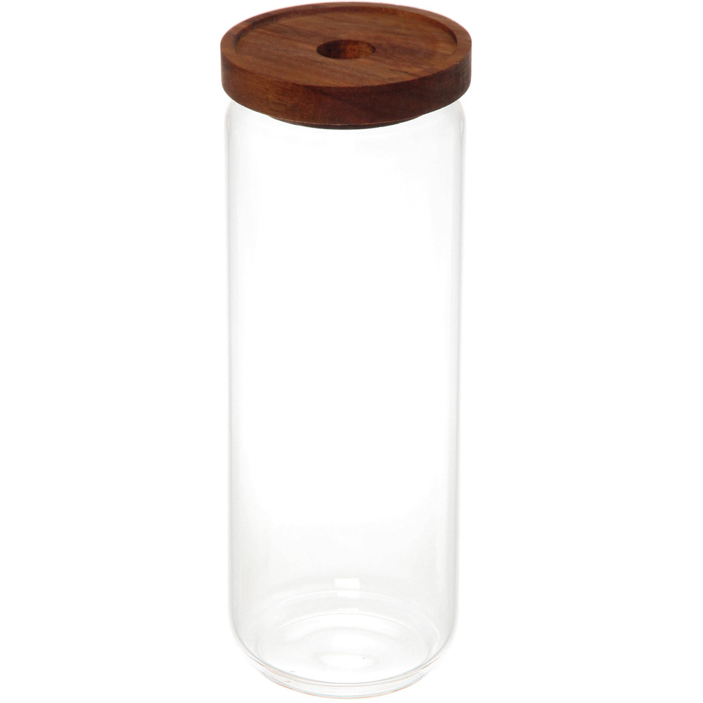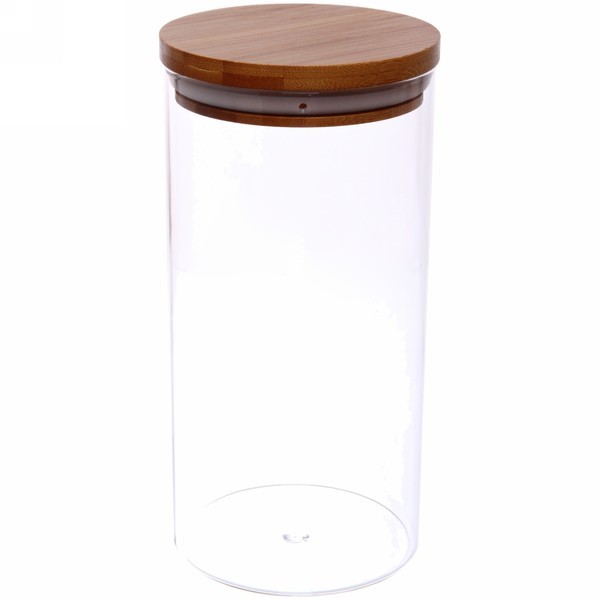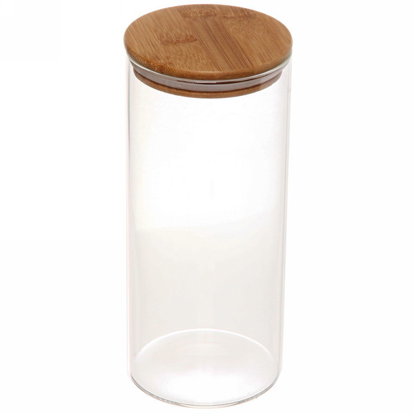 Банка для продуктов стеклянная 1300мл "Хай-Тек" с крышкой из акации 9*25смВопросы по товару