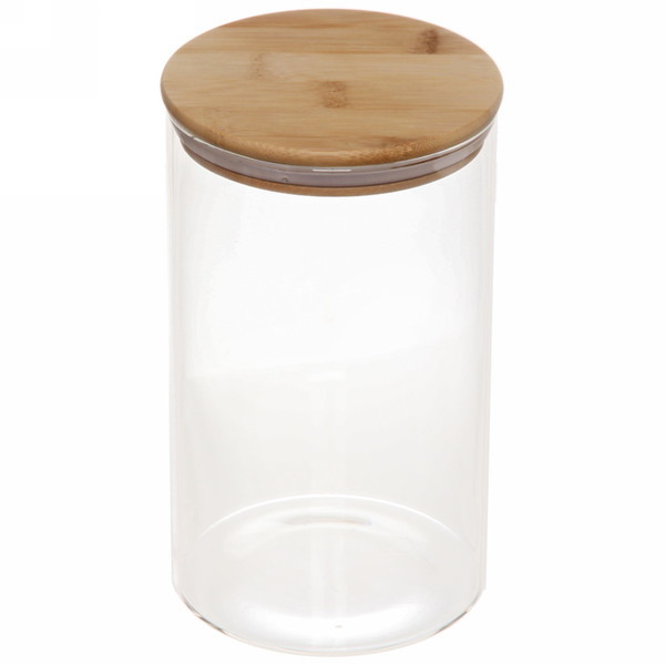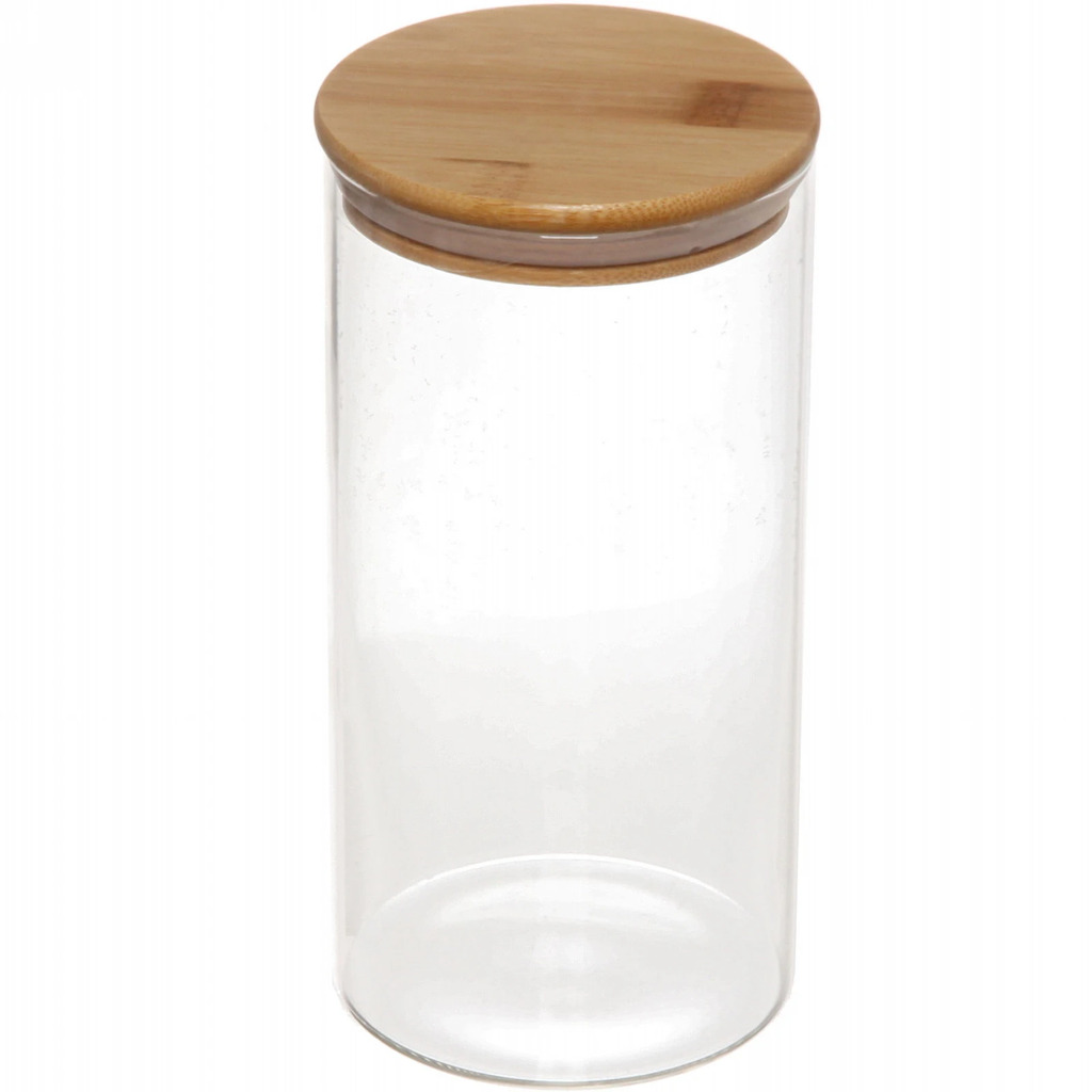 Банка для продуктов стеклянная 900мл "Хай-Тек" с бамбуковой крышкой 10*15смВопросы по товару