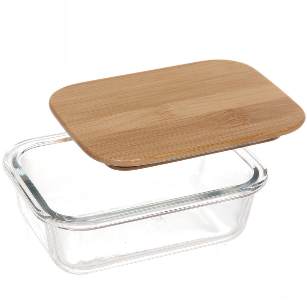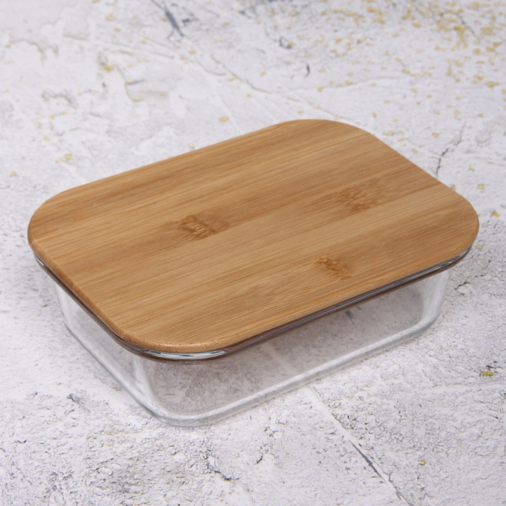 Контейнер стеклянный 600мл Хай-Тек прямоугольный с бамбуковой крышкойВопросы по товару