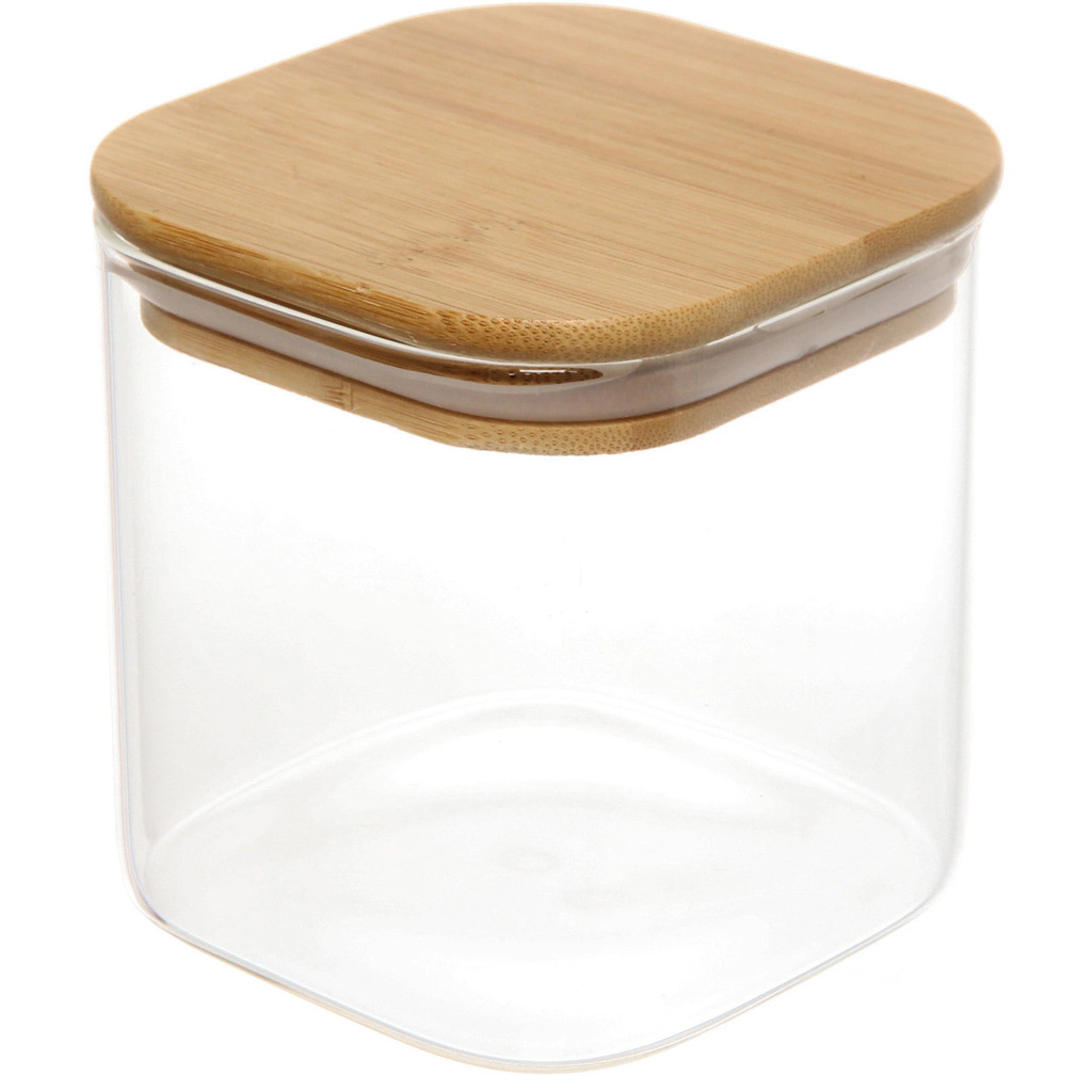Банка для продуктов стеклянная 700мл "Хай-Тек" с бамбуковой крышкой, квадратная 10*12смВопросы по товару