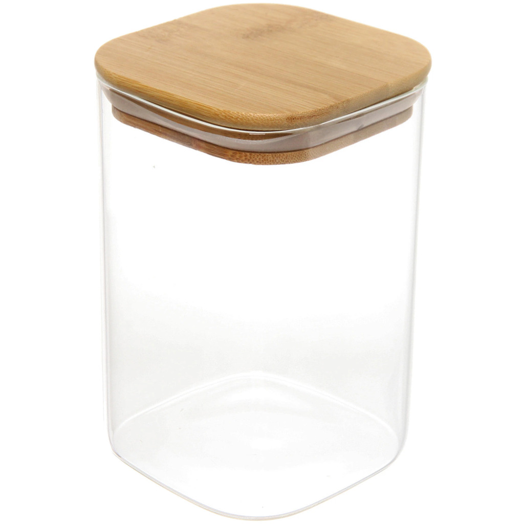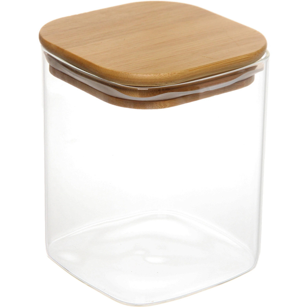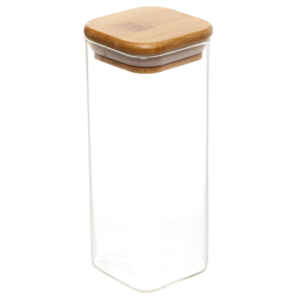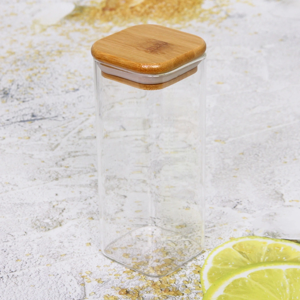 Банка для продуктов стеклянная 1000мл "Хай-Тек" с бамбуковой крышкой, квадратная 10*15смВопросы по товару