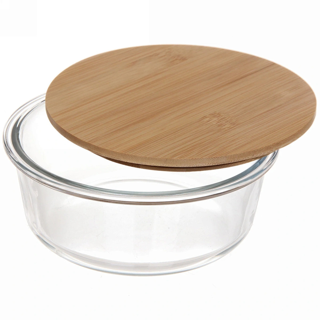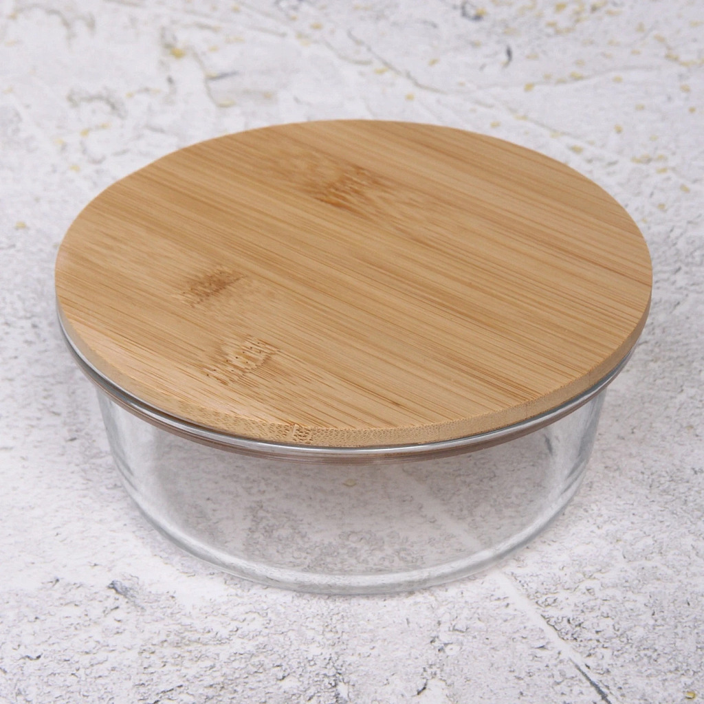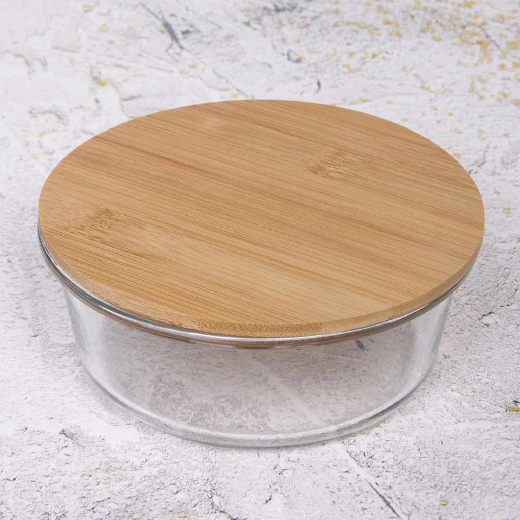 Контейнер стеклянный 650мл Хай-Тек круглый с бамбуковой крышкойВопросы по товару