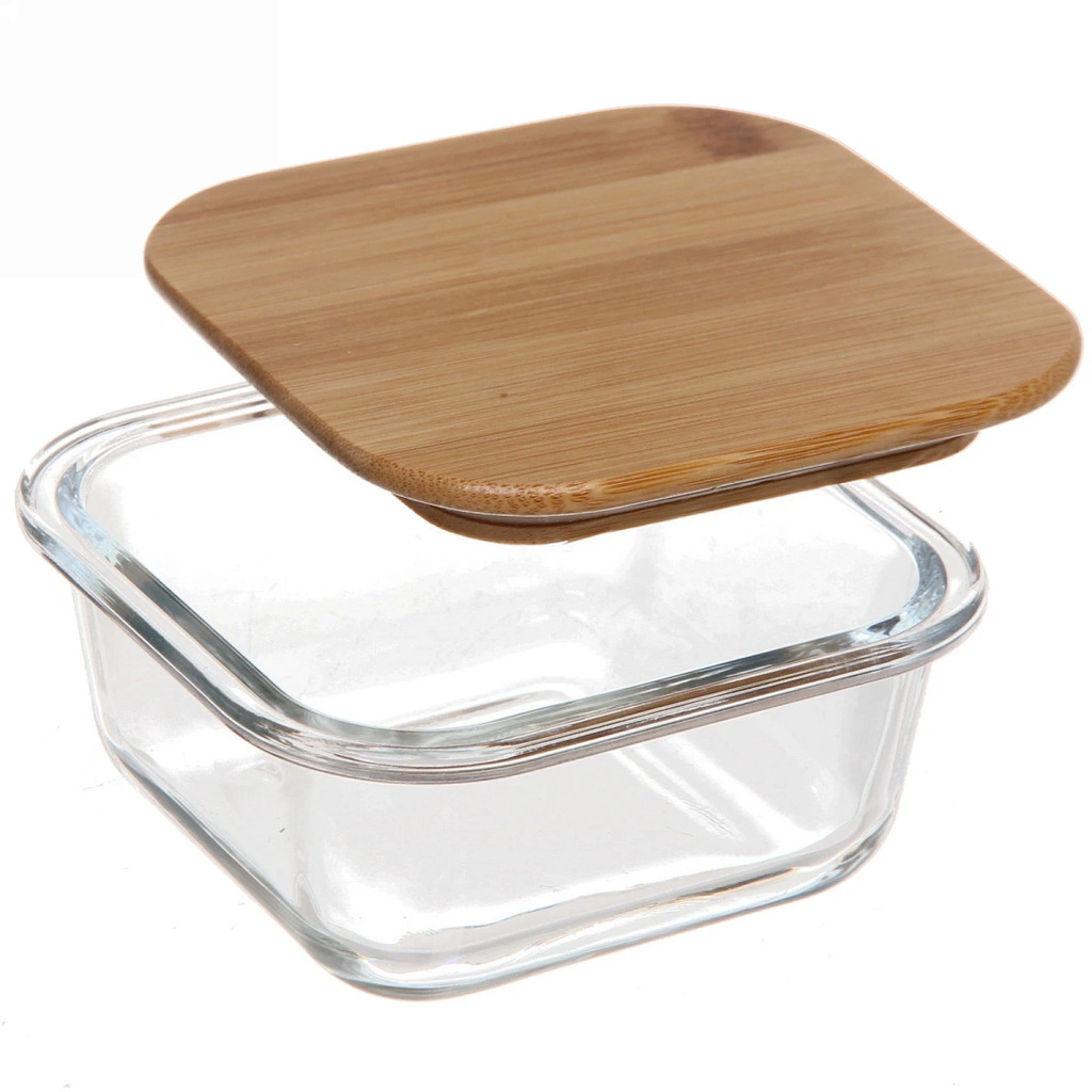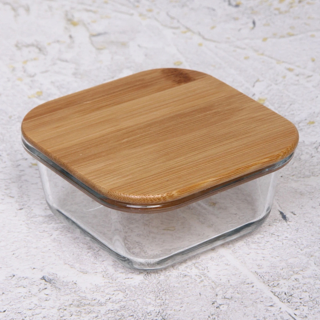 Контейнер стеклянный 300мл "Хай-Тек" квадратный с бамбуковой крышкойВопросы по товару