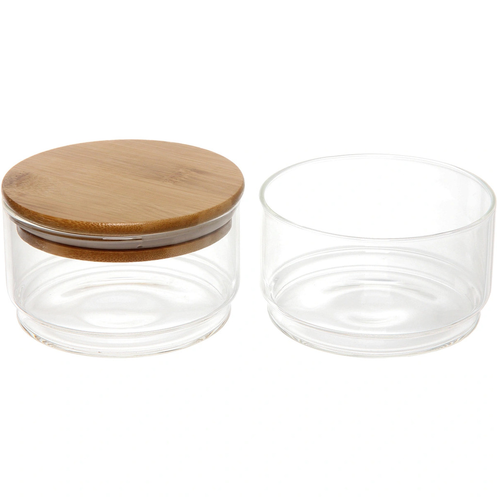 Банка для продуктов стеклянная 100мл "Хай-Тек" с бамбуковой крышкой 6,5*7смВопросы по товару