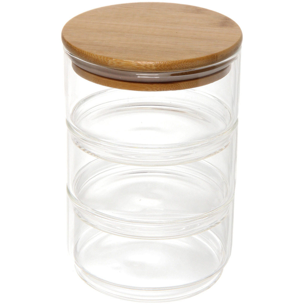 Банка для продуктов стеклянная "Хай-Тек" в наборе 3*400мл с бамбуковой крышкой 11*6смВопросы по товару