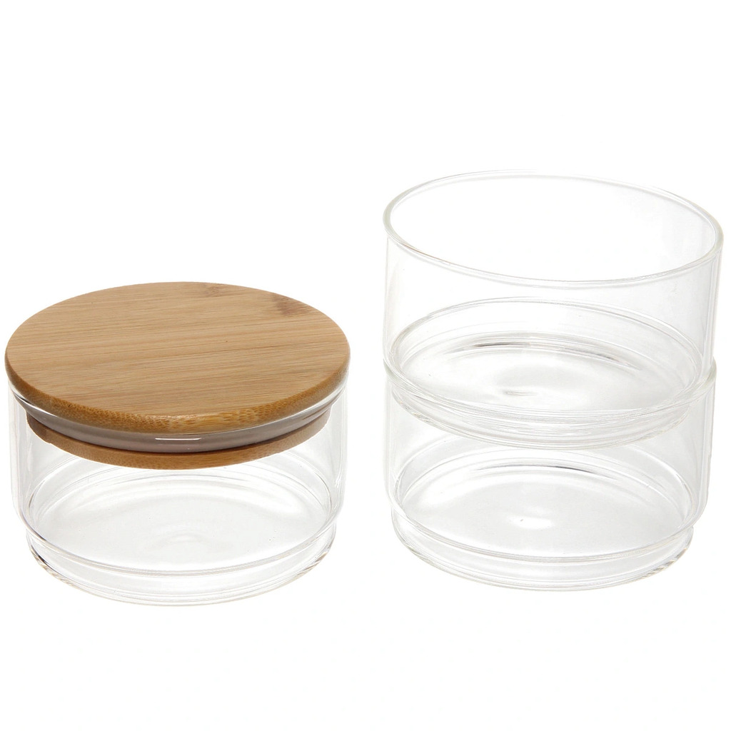 Банка для продуктов стеклянная "Хай-Тек" в наборе 2*400мл с бамбуковой крышкой 11*6смВопросы по товару