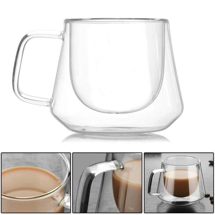 Кружка стеклянная с двойными стенками 200мл Хай-Тек трапецияВопросы по товару
