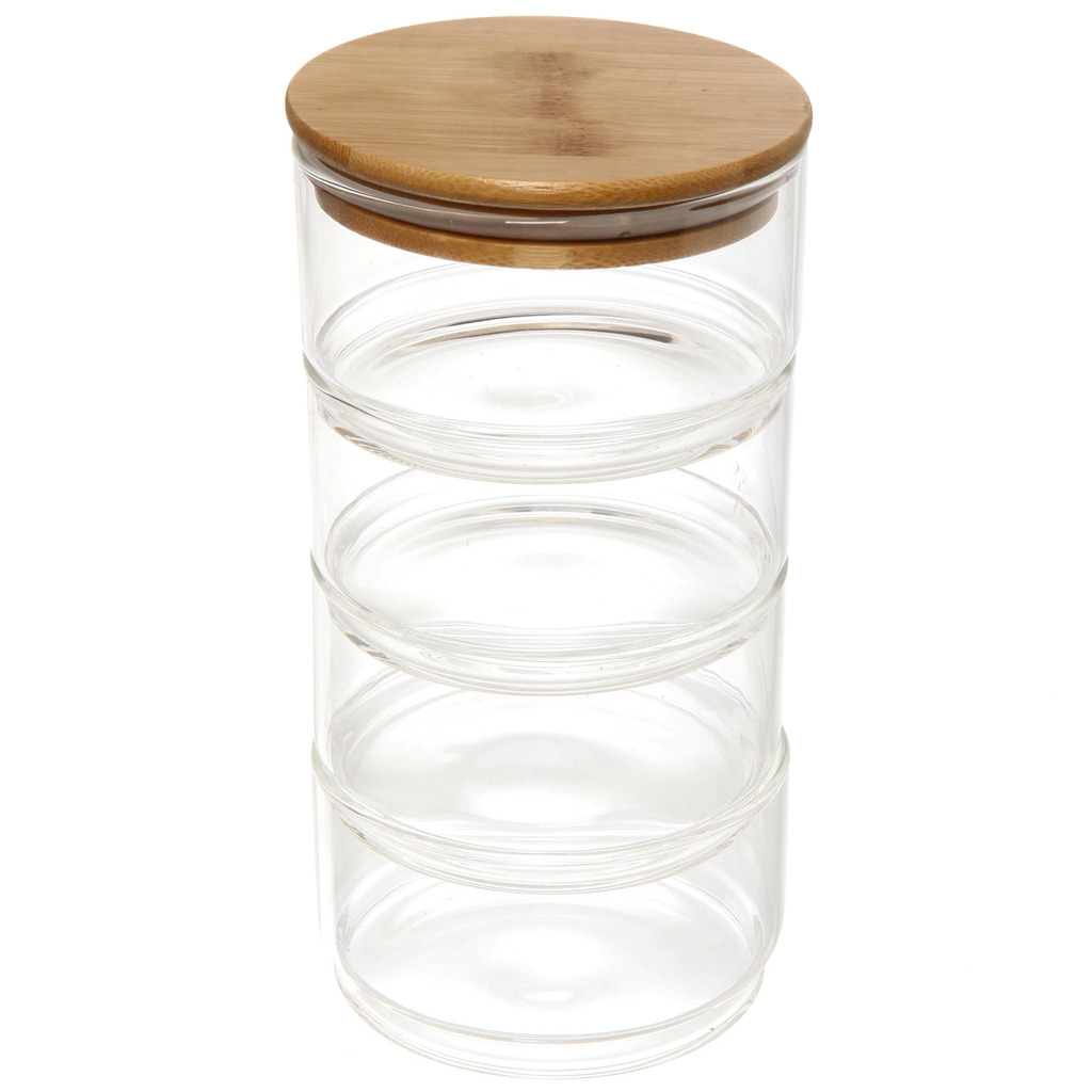 Банка для продуктов стеклянная "Хай-Тек" в наборе 4*400мл с бамбуковой крышкой 11*6смВопросы по товару