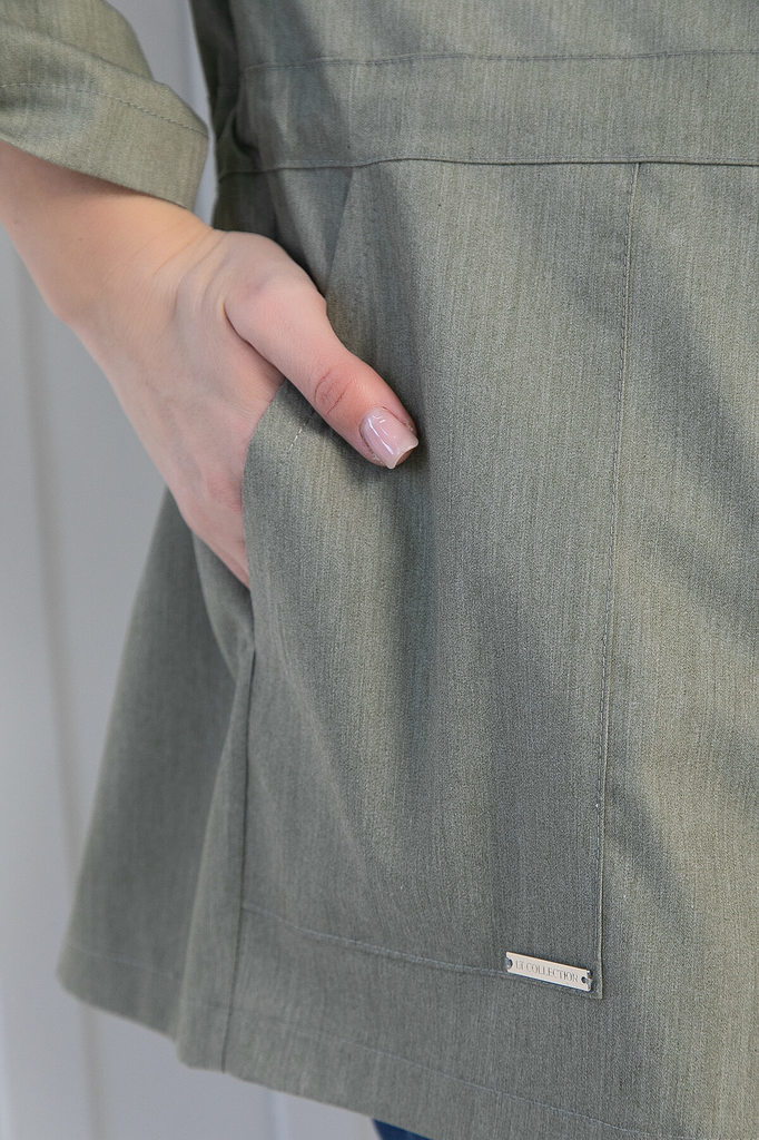 Артикул: Б12917-44М. Тип ткани: смесовый. Состав: 70% полиэстер, 25% вискоза, 5% эластан. Материал: костюмный. Цвет: хаки. Принт: отсутствует. Вид застежки: молния. Силуэт: прямой. Карм... Показать описаниеаны: есть. Подкладка: отсутствует. Декоративные элементы: металлическая нашивка. Длина по спинке от верхней точки плеча: 46/ 78.5 см, 48/ 79 см, 50/ 79.5 см, 52/ 80 см, 54/ 80.5 см, 56/ 81 см. Размер изделия на модели: 44 Рост модели: 167 см. Жакет отснят с джемпером арт. Б12898-12М Лёгкая ветровка прямого кроя — идеальный выбор для весенне-осенних и прохладных летних дней. Она застёгивается на молнию и имеет свободный крой с опущенными плечами, что придаёт образу непринуждённый вид. Рукава можно носить в двух вариантах: длина 3/4 фиксируется патами на кнопках, а при желании можно оставить длинные рукава, просто расстёгнув их. Воротник-стойка придаёт ветровке современный вид, а кулиска по талии позволяет регулировать силуэт, подчёркивая фигуру. Уход за изделием: ручная стирка до 30 градусов; нельзя отбеливать; отжим запрещён; гладить при t не более 110 С; гладить с изнанки. Внимание! Рекомендуем ориентироваться на размерную сетку и выбирать свой привычный размер, согласно размерной таблице. *Допуск отклонения длины при массовом производстве 1-3 см является нормой.