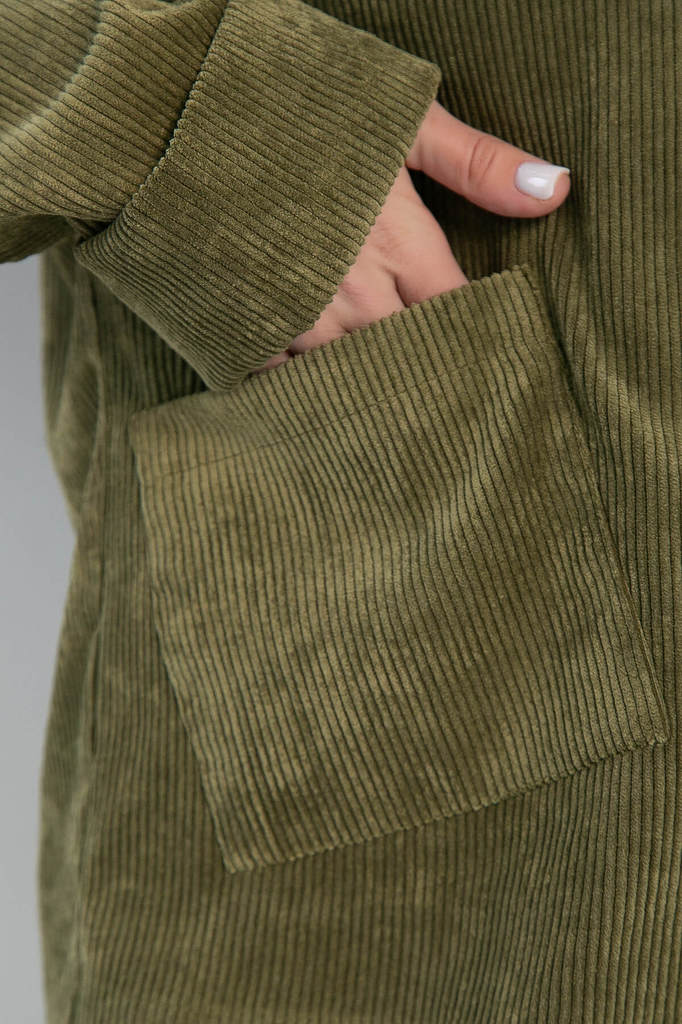 Артикул: Б12994-9М. Тип ткани: смесовый. Состав: 65% полиэстер, 30% хлопок, 5% эластан. Материал: вельвет. Цвет: хаки. Принт: отсутствует. Вид застежки: молния. Силуэт: прямой. Карманы:... Показать описание есть. Подкладка: отсутствует. Декоративные элементы: отсутствуют. Длина по спинке от верхней точки плеча: 44/ 62 см, 46-48/ 63 см, 50-52/ 64 см. Размер изделия на модели: 44 Рост модели: 167 см. Жакет отснят с футболкой арт. Б12942-7М Стильный и практичный женский жакет в оттенке хаки из крупного вельвета — это must-have для вашего гардероба! Изготовленный из мягкого и не мнущегося материала, этот жакет подарит вам комфорт и элегантный вид в любое время года. Застёгивается на удобную молнию, что позволяет легко надевать и снимать его. Он отлично сочетается с кожаными или джинсовыми низами, позволяя создавать разнообразные образы — от повседневных до более нарядных. Добавьте этот жакет в свою коллекцию и будьте уверены в своём стиле! Уход за изделием: ручная стирка до 30 градусов; нельзя отбеливать; отжим запрещён; гладить при t не более 110 С; гладить с изнанки. Внимание! Рекомендуем ориентироваться на размерную сетку и выбирать свой привычный размер, согласно размерной таблице. *Допуск отклонения длины при массовом производстве 1-3 см является нормой.