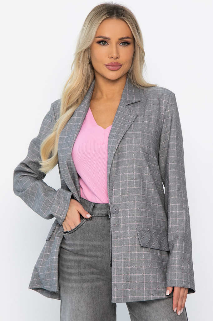 Состав : 65% полиэстер, 30% вискоза, 5% эластан Материал : костюмный с добавлением тонкой нити люрекса Цвет : серый Принт : клетка Силуэт : прямой Карманы : отсутствуют Подкладка : отсутствует Вид зас... Показать описаниетежки : пуговица Декоративные элементы : отсутствуют Длина : 44 - 75 см,, 46 - 75 см,, 48 - 76 см,, 50 - 77 см,, 52 - 78 см,, 54 - 79 см Обхват груди : 44 - 100, 46 - 104, 48 - 108, 50 - 112, 52 - 116, 54 - 120 Обхват бёдер : 44 - 100, 46 - 104, 48 - 108, 50 - 112, 52 - 116, 54 - 120 Обхват талии : 44 - 100, 46 - 104, 48 - 108, 50 - 112, 52 - 116, 54 - 120 Дополнительные параметры размеров : 44 - длина рукава Отснято с брюками Б14180-19М Элегантный женский жакет прямого кроя — находка для создания стильных и актуальных образов. Он выполнен из костюмной ткани с добавлением тонкой нити люрекса, что придает изделию изысканный блеск и особую текстуру. Этот жакет отлично подойдет как для праздничных мероприятий, так и для повседневной носки, подчеркивая ваш стиль и индивидуальность. Комфортная посадка и универсальность делают его незаменимым элементом модного гардероба. Внимание! Рекомендуем ориентироваться на размерную сетку и выбирать свой привычный размер, согласно размерной таблице. *Допуск отклонения длины при массовом производстве 1-3 см является нормой. Уход за изделием: Ручная стирка или стирка в машине при температуре до 30 °C, деликатный режим. Не использовать отбеливатели. Разрешена глажка при температуре до 110 °C. При глажке использовать специальную насадку на подошве утюга, гладить с паром. Не замачивать и не выжимать. Стирать изделие наизнанку, отдельно от других вещей.