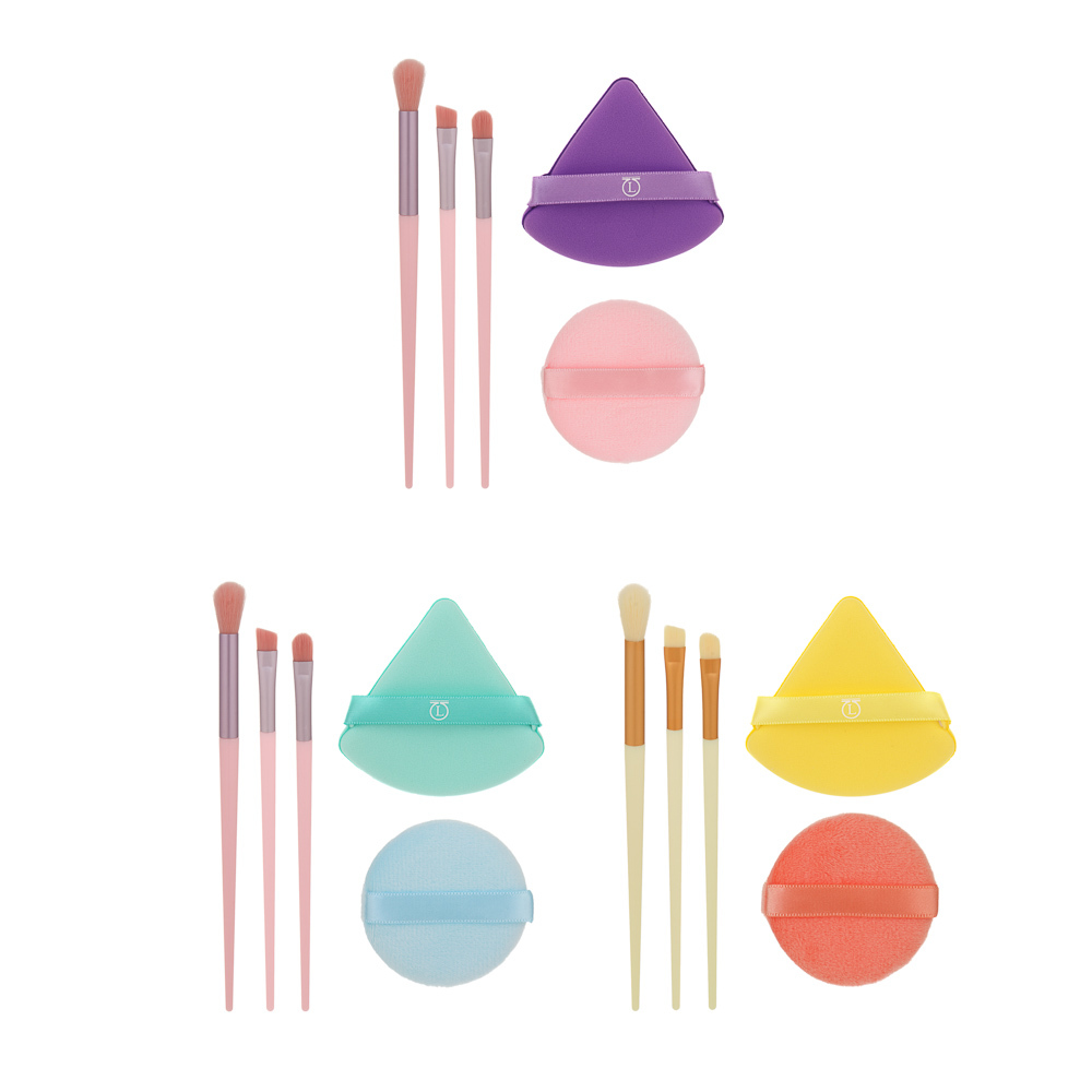 Набор для визажа 5 шт (спонжи 2 шт, кисти 3 шт) тм ЮНИLOOK, ЭВА, ПУ, пластик, нейлон, 3 цвета Вопросы по товару
