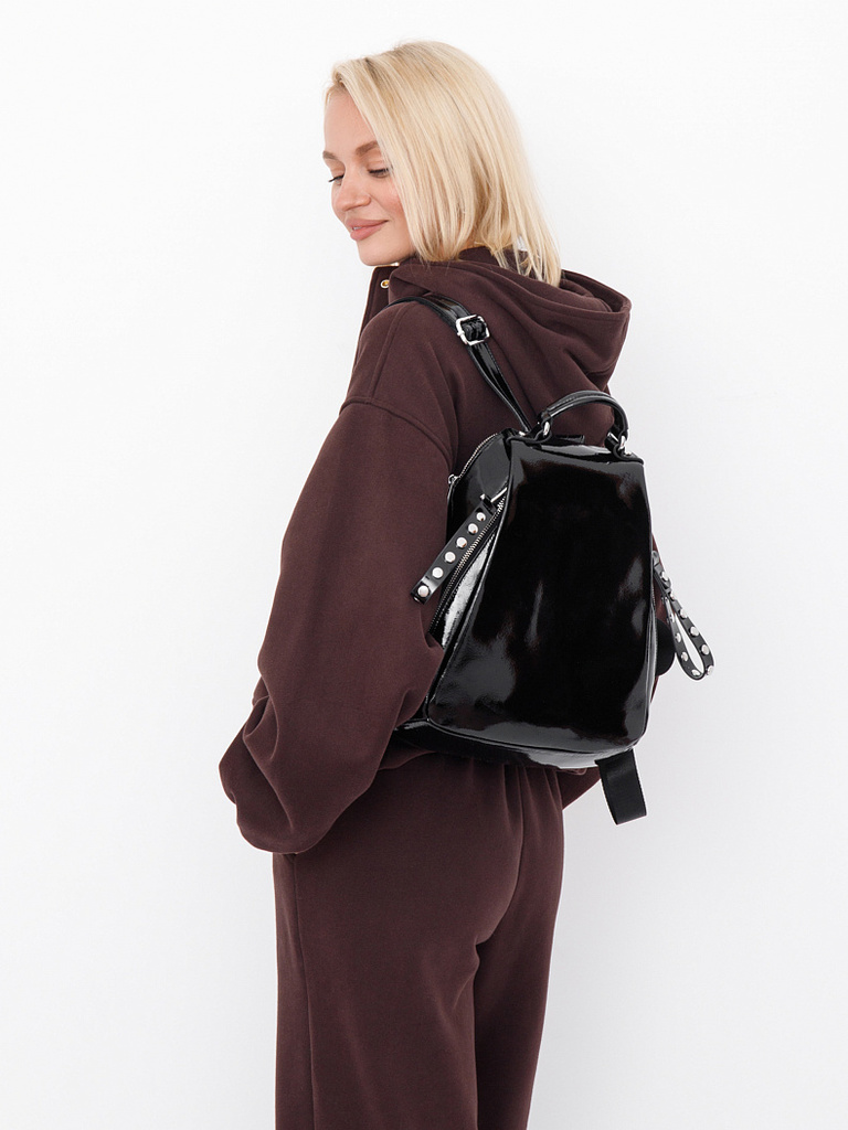Ширина (см): 13. Длина (см): 26. Высота (см): 34. Вес (г): 850. Бренд: Polina&Eiterou. Материал: Натуральная кожа. Удобный рюкзак, выполнен из натуральной лаковой кожи. Дополнен серебристой фурнитурой ... Показать описание. Данная модель закрывается на клапан. Каркас полужесткий. Рюкзак носится в руке или на плече. Встроенный ремни регулируются по длине. Внутри: подкладочная ткань, на боковых частях карман на молнии и открытый. Снаружи: основной отдел на клапан. На задней части карман на молнии. По бокам два кармана под клапаном. Подробное описание: https://www.sumka-style.ru/catalog/zhenskie/sumki/ryukzaki/18337-8-polina-eiterou-/offer/20880/