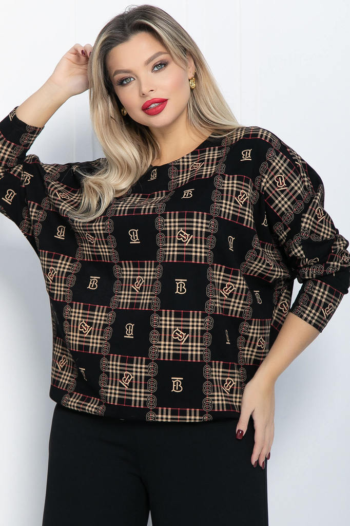 Артикул: Б11878. Тип ткани: синтетическая. Состав: 95% полиэстер, 5% эластан. Материал: трикотаж. Цвет: чёрный. Принт: квадраты, буквы. Вид застежки: без застёжки Силуэт: оверсайз. Карм... Показать описаниеаны: отсутствуют. Подкладка: отсутствует. Декоративные элементы: кулиска с фиксатором по низу изделия Длина по спинке от верхней точки плеча: 50/ 67 см, 52/ 68 см, 54/ 69 см, 56/ 70 см. Размер изделия на модели: 52 Рост модели: 170 см. Женственный блузон, выполненный в стиле оверсайз, безусловно станет фаворитом в вашем модном гардеробе. Полноценная длина изделия на кулиске с фиксатором, рукав "летучая мышь" и свободный крой обеспечат комфорт и свободу движений. Манжет удлинен и заужен таким образом, чтобы рукав можно было носить слегка укороченным. Актуальный модный принт позволит вам выделяться. Блузон прекрасно сочетается как с брюками, так и с юбкой. Любое мероприятие в прохладную погоду - подходящий повод надеть такой блузон. Уход за изделием: ручная стирка до 30 градусов; нельзя отбеливать; отжим запрещён; гладить при t не более 110 С; гладить с изнанки. Внимание! Рекомендуем ориентироваться на размерную сетку и выбирать свой привычный размер, согласно размерной таблице. *Допуск отклонения длины при массовом производстве 1-3 см является нормой.