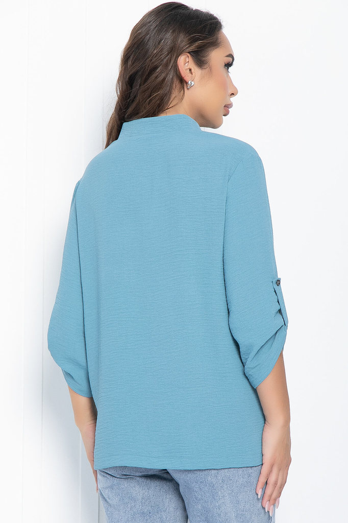 Артикул: Б11054. Тип ткани: смесовая. Состав: 83% полиэстер, 12% вискоза, 5% эластан. Материал: блузочная. Цвет: морской волны. Принт: отсутствует. Вид застежки: без застёжки. Силуэт: п... Показать описаниерямой. Карманы: отсутствуют. Подкладка: отсутствует. Декоративные элементы: паты на рукавах. Длина по спинке от верхней точки плеча: 44-52/ 68 см. Размер изделия на модели: 44. Рост модели: 167 см. Лёгкая блуза свободного кроя в красивом цвете морской волны. Классический воротник-стойка, рукав три четверти, на пате. По бокам есть разрезы. Такая блуза подойдёт для создания офисного образа, а также её можно использовать в повседневных ансамблях. Уход за изделием: ручная стирка до 30 градусов; нельзя отбеливать; отжим запрещён; гладить при t не более 110 С; гладить с изнанки. Внимание! Рекомендуем ориентироваться на размерную сетку и выбирать свой привычный размер, согласно размерной таблице. *Допуск отклонения длины при массовом производстве 1-3 см является нормой.