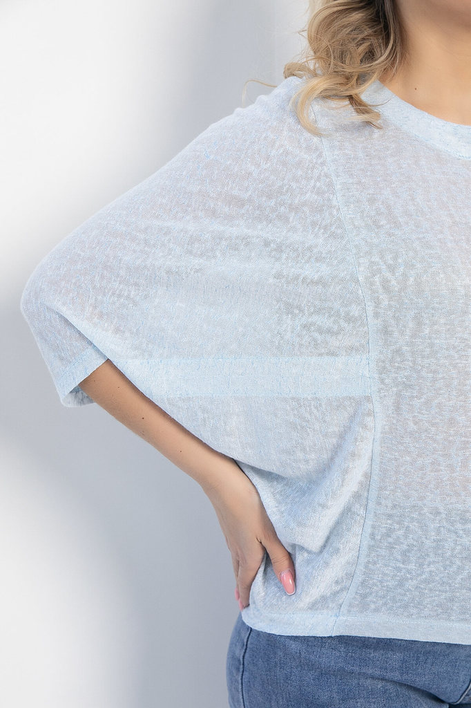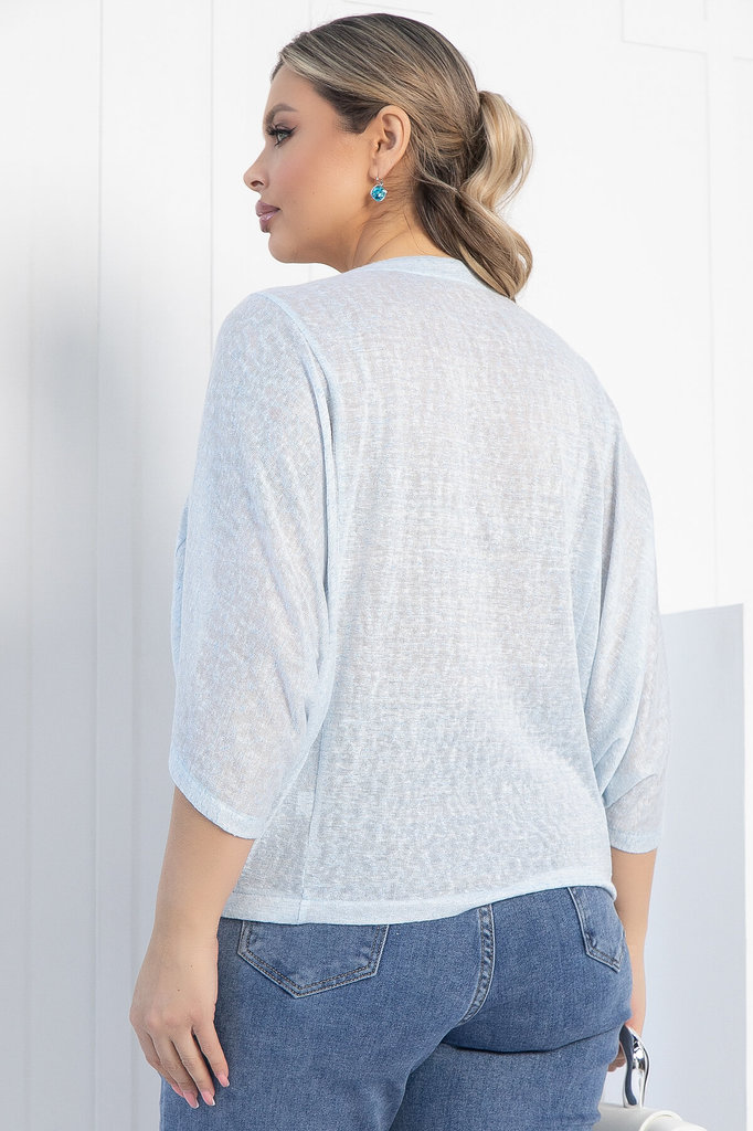 Артикул: Б12827-16М. Тип ткани: синтетический. Состав: 95% вискоза, 5% эластан. Материал: трикотаж. Цвет: голубой. Принт: отсутствует. Вид застежки: без застёжки. Силуэт: оверсайз. Карм... Показать описаниеаны: отсутствуют. Подкладка: отсутствует. Декоративные элементы: отсутствуют. Длина по переду (ассиметричный крой): M (46-48) - 57 см, L (50-52) - 58 см, XL (54-56) - 59 см. Длина по спинке от верхней точки плеча: M (46-48) - 61 см, L (50-52) - 62 см, XL (54-56) - 63 см. Размер изделия на модели: 52 Рост модели: 170 см. Блузка отснята с белыми брюками арт. Б12685-13 Оригинальная женственная блуза станет прекрасным дополнением в вашем гардеробе. Хорошо стилизуется как самостоятельный верх с юбками и брюками, так и может использоваться как дополнение к платью или топу. Отлично подчеркнет вашу индивидуальность. Уход за изделием: ручная стирка до 30 градусов; нельзя отбеливать; отжим запрещён; гладить при t не более 110 С; гладить с изнанки. Внимание! Рекомендуем ориентироваться на размерную сетку и выбирать свой привычный размер, согласно размерной таблице. *Допуск отклонения длины при массовом производстве 1-3 см является нормой.