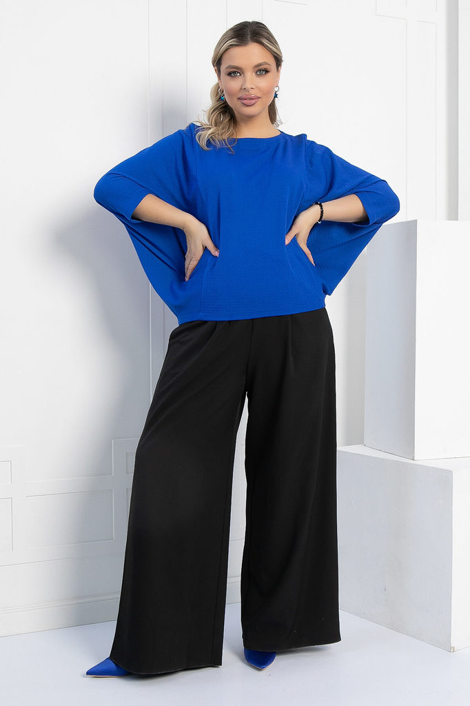 Артикул: Б12912-16М. Тип ткани: синтетический. Состав: 98% полиэстер, 2% эластан. Материал: трикотаж. Цвет: синий. Принт: отсутствует. Вид застежки: без застёжки. Силуэт: оверсайз. Карм... Показать описаниеаны: отсутствуют. Подкладка: отсутствует. Декоративные элементы: отсутствуют. Длина по переду (ассиметричный крой): M (46-48) - 57 см, L (50-52) - 58 см, XL (54-56) - 59 см. Длина по спинке от верхней точки плеча: M (46-48) - 61 см, L (50-52) - 62 см, XL (54-56) - 63 см. Размер изделия на модели: L (50-52) Рост модели: 170 см. Блузка отснята с белыми брюками арт. Б12685-13 и с черными брюками арт. Б10952 Оригинальная женственная блуза станет прекрасным дополнением в вашем гардеробе. Хорошо стилизуется как самостоятельный верх с юбками и брюками, так и может использоваться как дополнение к платью или топу. Отлично подчеркнет вашу индивидуальность. Уход за изделием: ручная стирка до 30 градусов; нельзя отбеливать; отжим запрещён; гладить при t не более 110 С; гладить с изнанки. Внимание! Рекомендуем ориентироваться на размерную сетку и выбирать свой привычный размер, согласно размерной таблице. *Допуск отклонения длины при массовом производстве 1-3 см является нормой.