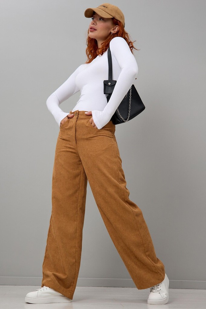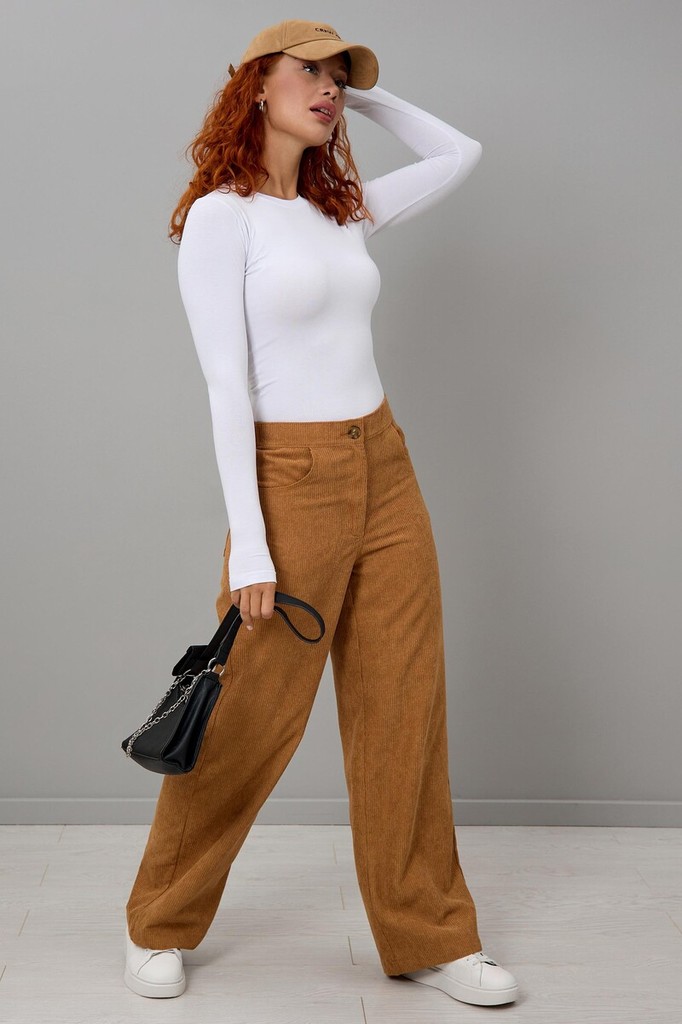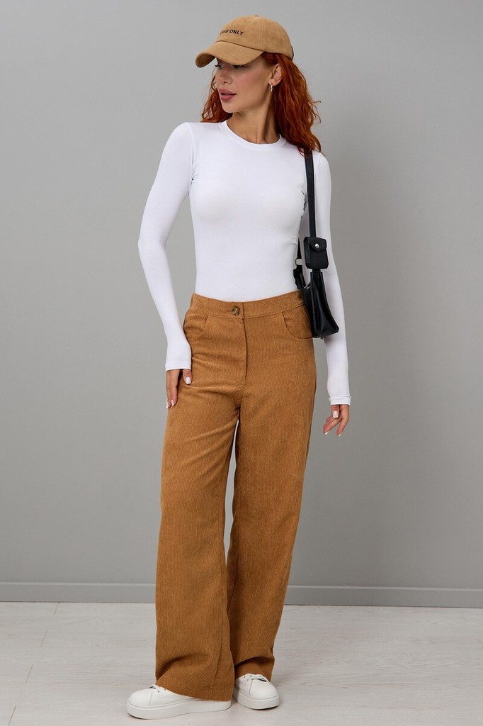 Состав : 65% полиэстер, 30% вискоза, 5% эластан Материал : вельвет Цвет : коричневый Принт : отсутствует Карманы : есть Резинка в поясе : да Вид застежки : без застежки Тип посадки брюк : высокая Пояс... Показать описание брюк : втачной Крой брюк : прямой Фасон брюк : классические Декоративные элементы : отсутствуют Обхват бедер : 44 - 100, 46 - 104, 48 - 108, 50 - 112, 52 - 116 Длина готового изделия по внутреннему шву : 44-78 см, 46-78 см, 48-78 см, 50-78 см, 52-78 см Длина готового изделия по боковому шву : 44-106 см, 46-106 см, 48-106 см, 50-106 см, 52-106 см Отснято с водолазкой Б14555-20М и с жакетом Б14327-39М Вельветовые брюки с классическим прямым кроем — это универсальный и стильный элемент гардероба, который идеально подходит для осени и межсезонья. Эти женские брюки прекрасно сочетаются с различными элементами гардероба, будь то элегантные блузки, уютные джемперы, деловые пиджаки или комфортные футболки. По талии резинка. Благодаря универсальному дизайну, они легко вписываются в любой образ, будь то офисный стиль, школьный лук или повседневный наряд для прогулок. Создавайте стильные и удобные образы каждый день с этими вельветовыми брюками! Внимание! Рекомендуем ориентироваться на размерную сетку и выбирать свой привычный размер, согласно размерной таблице. *Допуск отклонения длины при массовом производстве 1-3 см является нормой. Уход за изделием: Ручная стирка или стирка в машине при температуре до 30 °C, деликатный режим. Не использовать отбеливатели. Разрешена глажка при температуре до 110 °C. При глажке использовать специальную насадку на подошве утюга, гладить с паром. Не замачивать и не выжимать. Стирать изделие наизнанку, отдельно от других вещей.