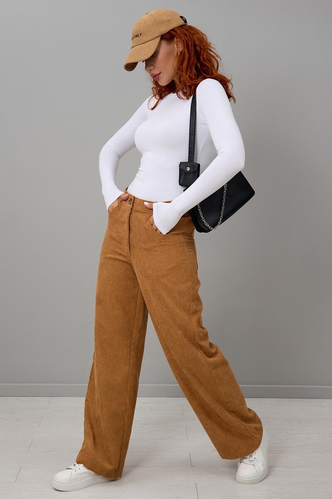 Артикул: Б11390. Тип ткани: синтетическая. Состав: 98% полиэстер, 2% эластан. Материал: микровельвет. Цвет: светло-коричневый. Принт: отсутствует. Вид застежки: молния. Тип посадки: высокий. Фасон: кл... Показать описаниеассический. Пояс: притачной. Крой: свободный. Резинка в поясе: отсутствует. Карманы: отсутствуют. Декоративные элементы: отсутствуют. Длина готового изделия по внутреннему шву: 44-54/ 79 см. Длина готового изделия по боковому шву: 44-54/ 112 см. Размер изделия на модели: 44. Рост модели: 168 см. Широкие брюки делают образ элегантным, визуально вытягивают силуэт. Оригинальная модель идеально сидит на фигуре любого типа благодаря завышенной линии талии, ростовка брюк рассчитана таким образом, чтобы брюки подходили как для высоких девушек, так и для невысоких. Приталенный силуэт (не оверсайз), красивая форма. Демисезонные стильные брюки сшиты из прочного материала без утеплителя. С такой моделью штанов можно легко составить множество повседневных образов: в школу, на работу и деловую встречу. А также нарядные образы: на день рождения, на прогулку по городу с друзьями. Брюки подойдут на осень, весну и как зимний и летний универсальный вариант. Рубашка на фото арт. Б10634 Уход за изделием: ручная стирка до 30 градусов; нельзя отбеливать; отжим запрещен; гладить при t не более 110 С; гладить с изнанки. Внимание! Рекомендуем ориентироваться на размерную сетку и выбирать свой привычный размер, согласно размерной таблице. *Допуск отклонения длины при массовом производстве 1-3 см является нормой.