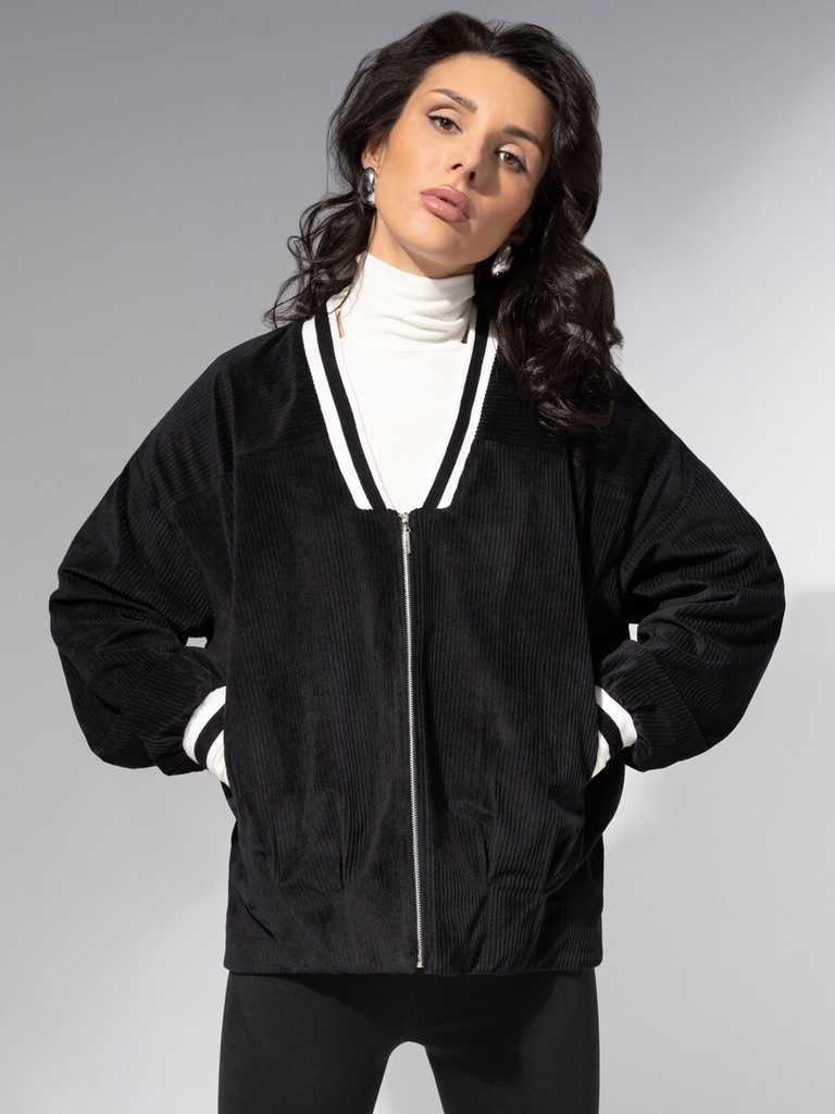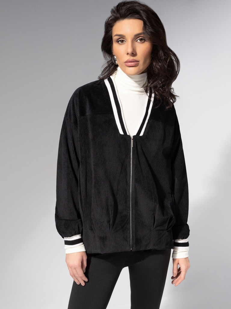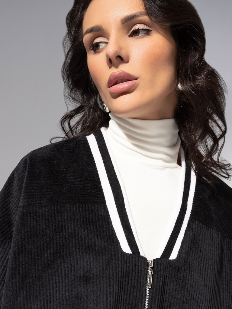 Она знает правила, но предпочитает их нарушать. Бомбер ЧАРУТТИ в стиле sport-chic – для тех, кто ценит баланс силы и утонченности. Эстетика 90-х возвращается с новым звучанием: уютный вельвет, мягкий ... Показать описаниекрой, контрастные детали. Модель с защипами с низу. Застежка на молнию. Манжеты и воротник выполнены из эластичного трикотажа с контрастной полосой. Есть карманы.