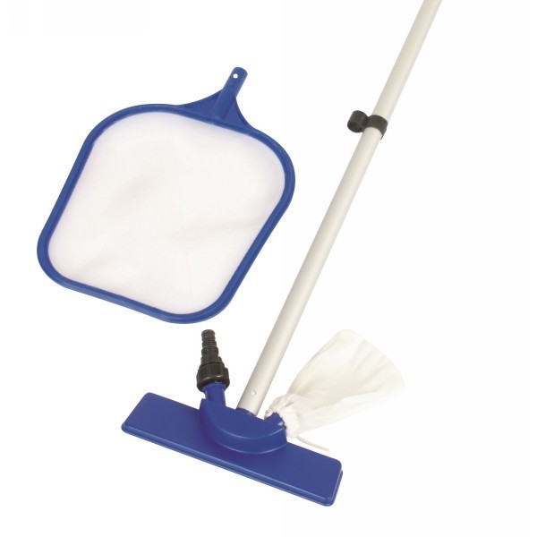 Бренд: Bestway Материал: Пластик ШтрихКод: 6941607361931 Страна происхождения: Китай Набор для чистки бассейна (сачок, вакуумная насадка с мешком, ручка 167 см) (Bestway 58013). В комплекте: - сачок д... Показать описаниеля сбора мусора на поверхности воды - телескопическая ручка 167 см - специальная вакуумная головка с многоразовым мешком для сбора мусора, которая служит для очистки поверхности под водой. Вакуумная насадка требует соединения с садовым шлангом для использования. Принцип работы насадки-пылесоса: насадка присоединяется к садовому шлангу, опускается на дно бассейна, где под напором воды грязь и крупный мусор собирается в мешок. Подходит для бассейнов диаметром до 396 см.