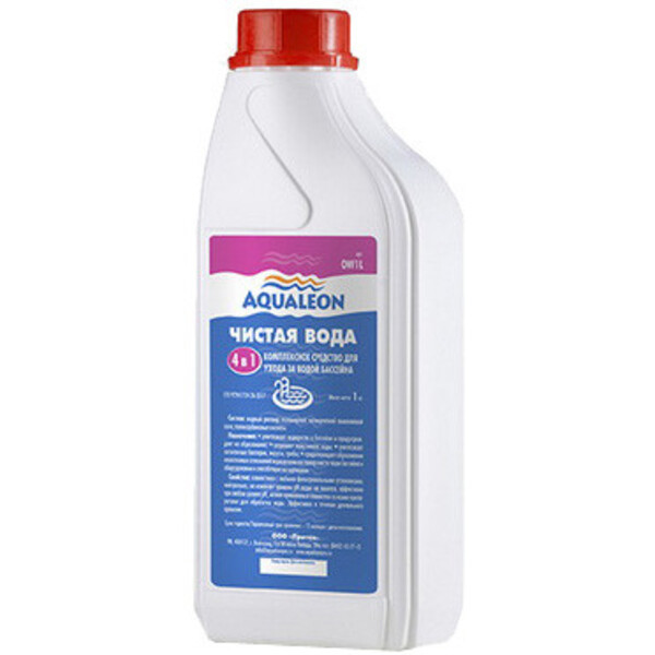 Комплексное средство для дезинфекции воды в бассейне Aqualeon ОW1L Чистая вода 4 в 1 (флакон,1 л, 0019)Вопросы по товару