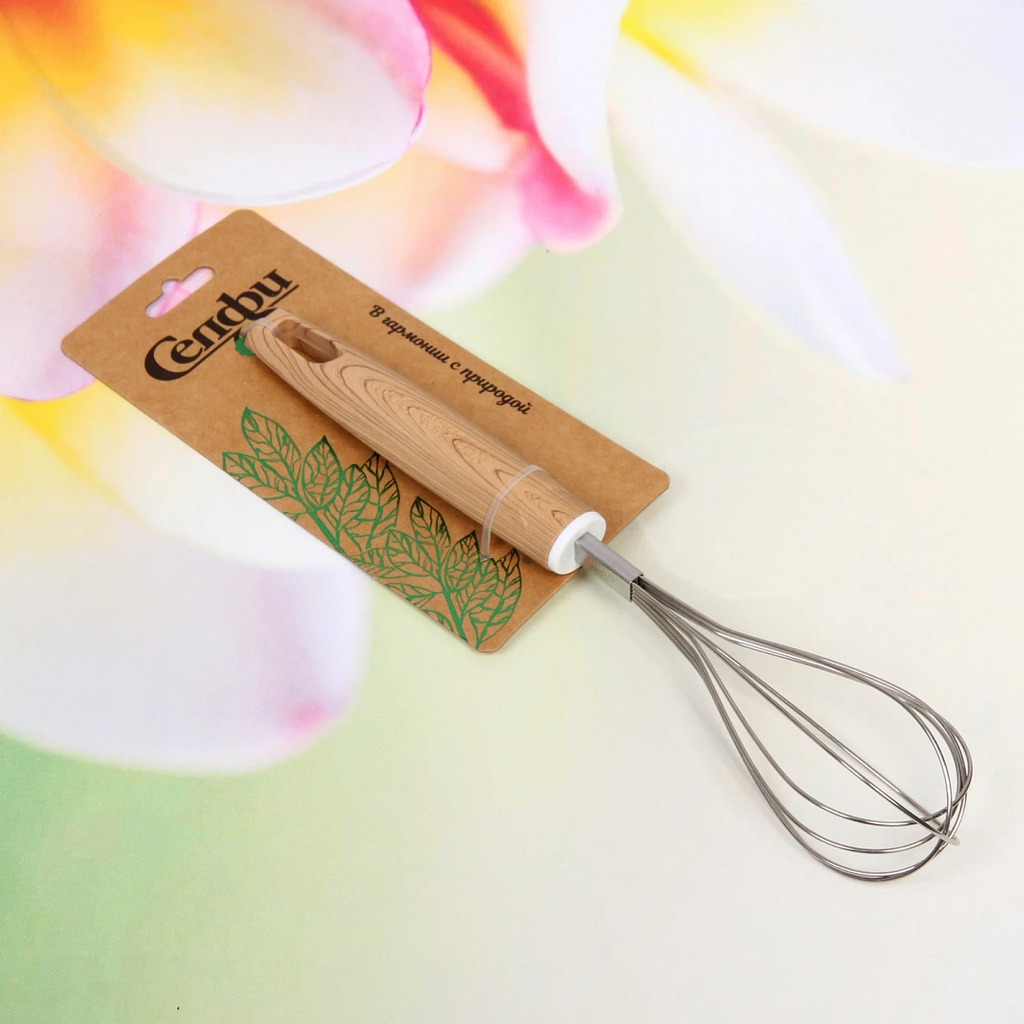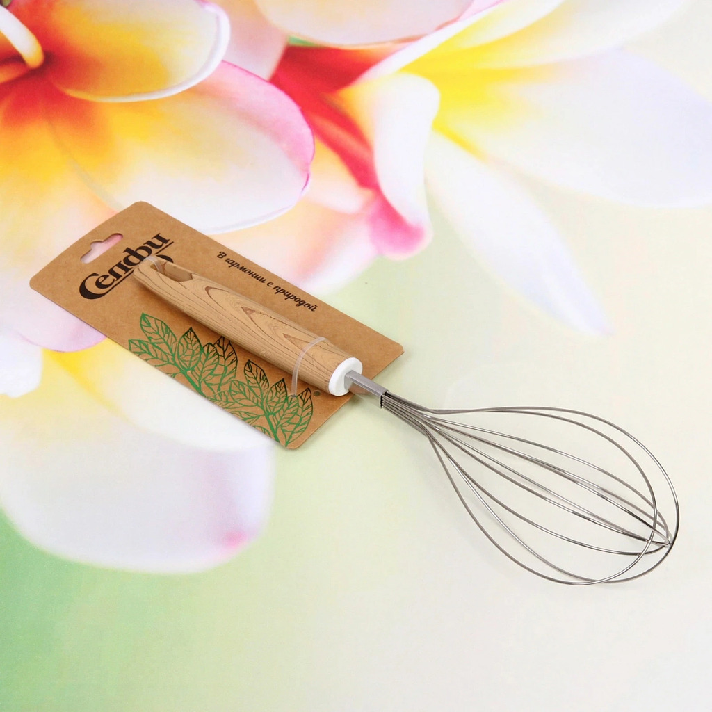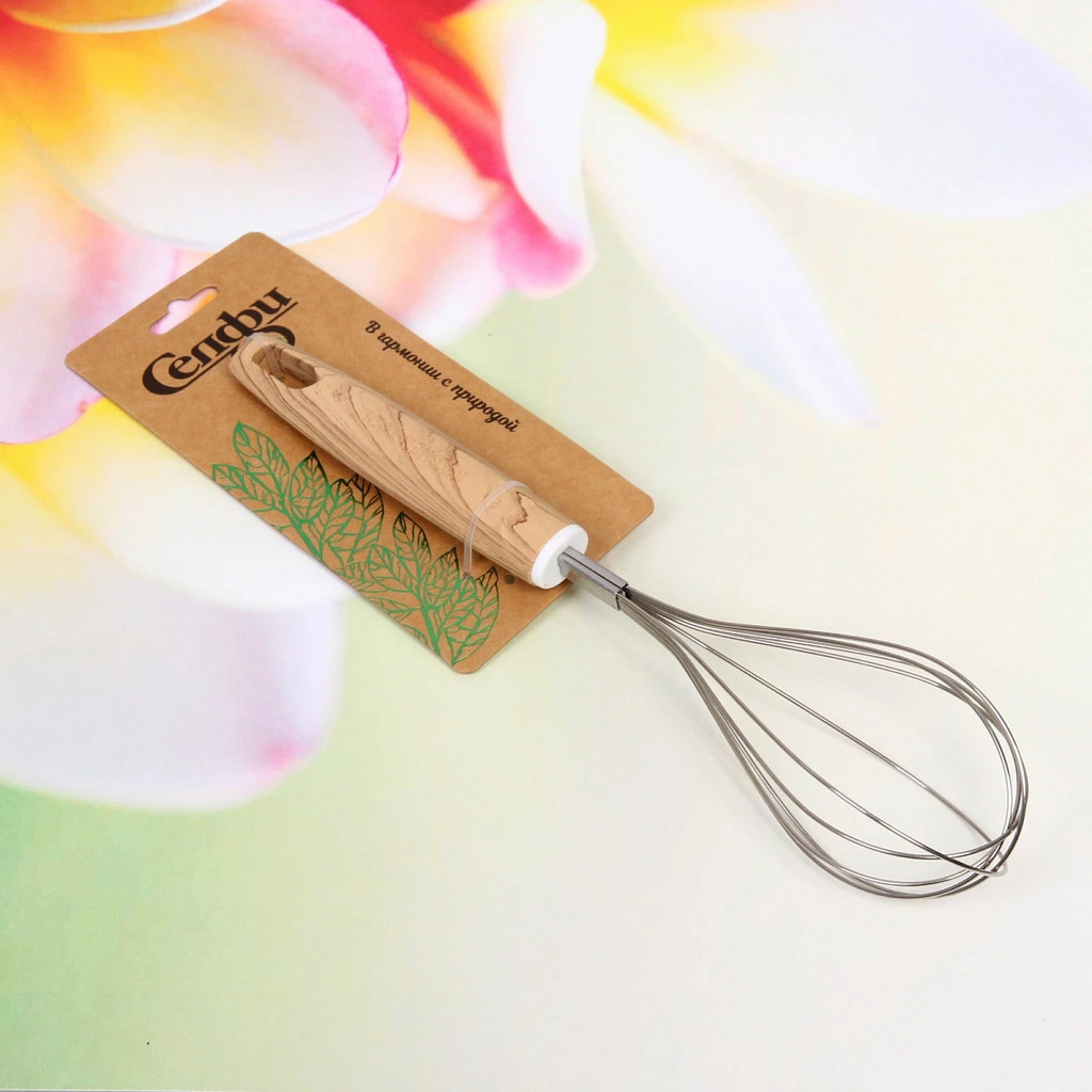 Бренд: Селфи Серия: Кухонная магия Материал: Дерево, силикон ШтрихКод: 6931994431423 Страна происхождения: Китай В любом деле надо стремиться к совершенству. С помощью правильно подобранных кухонных а... Показать описаниексессуаров даже начинающий повар-любитель почувствует себя профессиональным шеф-поваром! Для большинства любителей готовить, кухонные инструменты и приспособления, станут важными, полезными и незаменимыми. Стильный венчик обладает неоспоримыми преимуществами. Практичен в использовании, не повреждает и не царапает поверхность посуды. Устойчив к загрязнению, легок в уходе. Безопасен для здоровья и окружающей среды. Творите, пробуйте новое, балуйте себя и любимых.