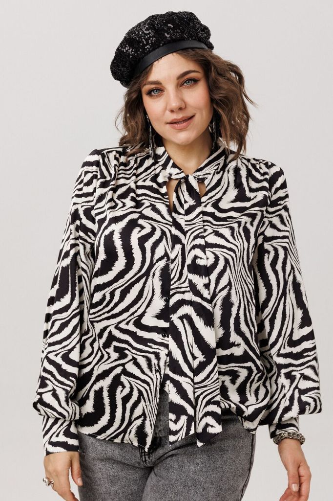 Блуза ANELLI 1779 черно-белые цветы Вопросы по товару