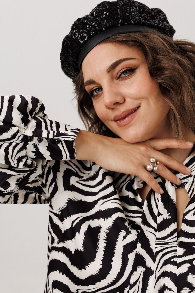 Состав: Вискоза-28%; ПЭ-68%; Эластан-4%; Сезон: Осень-Зима Рост: 170 Страна бренда: Беларусь Состав: Вискоза-28%; ПЭ-68%; Эластан-4%; Эта блуза от Анелли, в которой рождается праздник. Её силуэт — лёг... Показать описаниекое облако, струящееся в свободе кроя. Цельновыкроенный рукав, мягко раскрывающий запястье, и круглый вырез лишь подчёркивают изящную игру фактур. Основная часть, воздушная и прозрачная, как дымка, соткана из тончайшей сетки, сквозь которую мерцает кружевная тайна низа. Но главная магия - спереди: россыпь пайеток, застывших, как тысячи крошечных звёзд. Они не кричат, а шепчут о вечере, где зажигаются огни, или просто превращают серый день в момент сияния. В этом блузоне не просто одеваются - в нем танцуют, ловят взгляды и чувствуют, как обыденность отступает перед его летящим, фигурным подолом. Это наряд в цвете «черный авантюрин», в котором удобно быть самой яркой. Замеры: Размер 54: ОГ-124; ОТ-129; ОБ-134; ОП-50; ДИ спинки - 73; ДР- 58; ДИ переда- 79; Размер 56: ОГ-128; ОТ-133; ОБ-138; ОП-52; ДИ спинки - 75; ДР- 59; ДИ переда- 82; Размер 58: ОГ-133; ОТ-138; ОБ-142; ОП-54; ДИ спинки - 76; ДР- 59; ДИ переда- 83; Размер 60: ОГ-138; ОТ-142; ОБ-146; ОП-56; ДИ спинки - 76; ДР- 59; ДИ переда- 84; Размер 62: ОГ-143; ОТ-147; ОБ-150; ОП-56; ДИ спинки - 78; ДР- 59; ДИ переда- 84; Размер 64: ОГ-148; ОТ-152; ОБ-156; ОП-58; ДИ спинки - 79; ДР- 59; ДИ переда- 85;