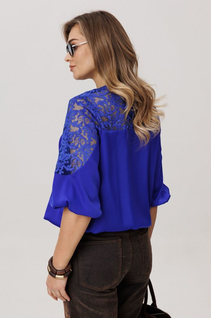 Состав: Вискоза-65%; ПЭ-32%; Спандекс-3%; Сезон: Осень-Зима Рост: 164 Страна бренда: Беларусь Состав: Вискоза-65%; ПЭ-32%; Спандекс-3%; Эта блуза - воплощение изящной женственности и воздушного очаров... Показать описаниеания. Её свободный, струящийся силуэт мягко обволакивает фигуру, даря ощущение лёгкости и невесомости. Фигурный вырез горловины плавными линиями подчёркивает красоту линий, добавляя образу утончённости в этом шикарном цвете «глубокий лазурит». Верхняя часть, словно лёгкое кружевное облако с изысканными кокетками на полочке, спинке и изящными вставками на рукавах, переходит в благородный гладкий атлас, мерцающий приглушённым блеском. Рукава три четверти, собранные у низа на тонкую резинку, и такой же аккуратный низ самой блузы создают мягкие, едва уловимые волны, добавляя образу воздушности и динамики. Эта вещь от Анелли -  искусное сочетание романтичного кружева и мягкого сияния атласа, которое способно превратить любой день в маленькое событие. Она станет идеальным спутником как для светского праздника, так и для тёплого корпоративного вечера, где царят красота и элегантность. Состав 1 (атлас): вискоза 65% полиэстер 32% спандекс 3%; Замеры: Размер 48: ОГ-110; ОТ-113; ОБ резинка растянута -116; ОП-40; ДИ-61; ДР-47; Размер 50: ОГ-114; ОТ-117; ОБ резинка растянута - 120; ОП-42; ДИ-61; ДР-46; Размер 52: ОГ-118; ОТ-121; ОБ резинка растянута - 124; ОП-42; ДИ-62; ДР-47; Размер 54: ОГ-122; ОТ-125; ОБ резинка растянута - 128; ОП-44; ДИ-62; ДР-46; Размер 56: ОГ-126; ОТ-129; ОБ резинка растянута - 132; ОП-44; ДИ-63; ДР-46; Размер 58: ОГ-132; ОТ-135; ОБ резинка растянута - 138; ОП-46; ДИ-64; ДР-46; Размер 60: ОГ-136; ОТ-139; ОБ резинка растянута - 142; ОП-46; ДИ-65; ДР-47; Размер 62: ОГ-140; ОТ-143; ОБ резинка растянута - 146; ОП-48; ДИ-65; ДР-46;