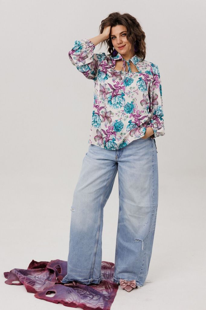 Блуза ANELLI 1806 розы лилии пионы